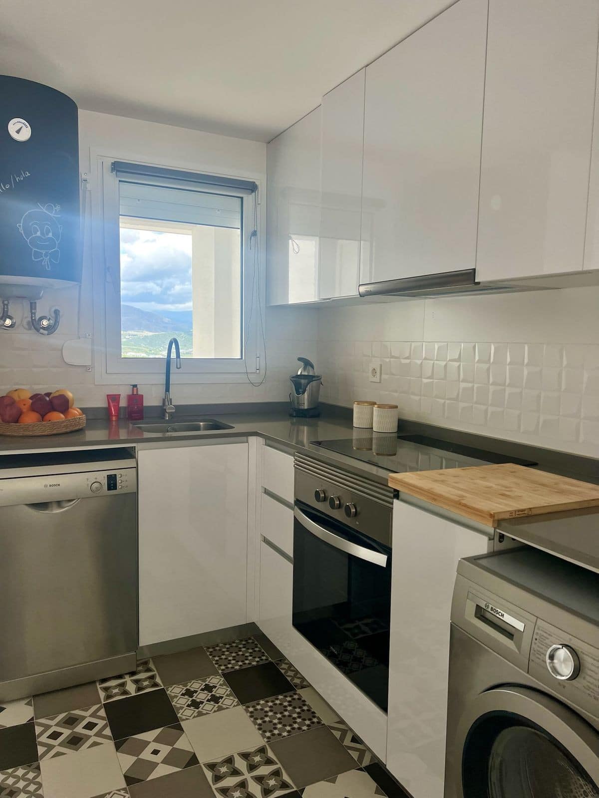 Stunning 3 bedroom 2 bathroom apartment with spectacular sea views in the prestigious new development of La Sabina, Camarate Golf. It is an elevated ground floor and its spacious and bright living-dining room with integrated modern kitchen with an island gives direct access to the incredible 45m2 terrace with covered and uncovered areas, plus a private garden of 240m2 perfect for relaxing moments or al fresco dining all year round. The master bedroom, also with direct access to the terrace, has an en-suite bathroom and large fitted wardrobes. The other two bedrooms share a bathroom and also have fitted wardrobes. The qualities of the apartment include air conditioning hot/cold, electric blinds amongst others, and there is a parking space and storage room included in the price.