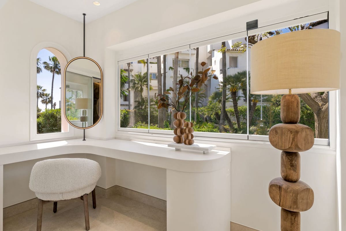 This is a beautifully renovated frontline beach, three-bedroom, two-bathroom apartment with nice sea views. It offers a stylish and comfortable living experience in one of Estepona’s most desirable coastal areas. Every detail of the 137 m² interior has been completely updated with a fresh, contemporary design that combines high-quality materials and modern finishes. Bright and welcoming, the apartment is fully and tastefully furnished, move-in ready and perfectly suited for luxurious beachfront living. A spacious 20 m² terrace extends the living space outdoors, providing a private spot to enjoy the tranquil surroundings.