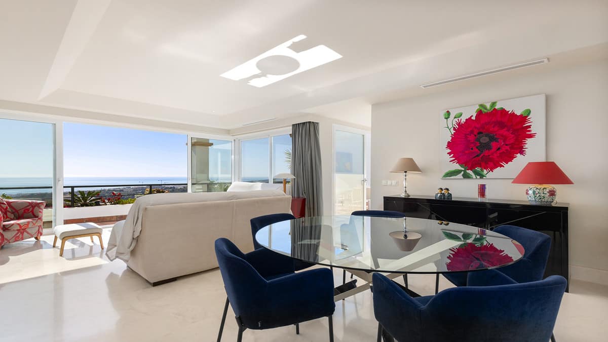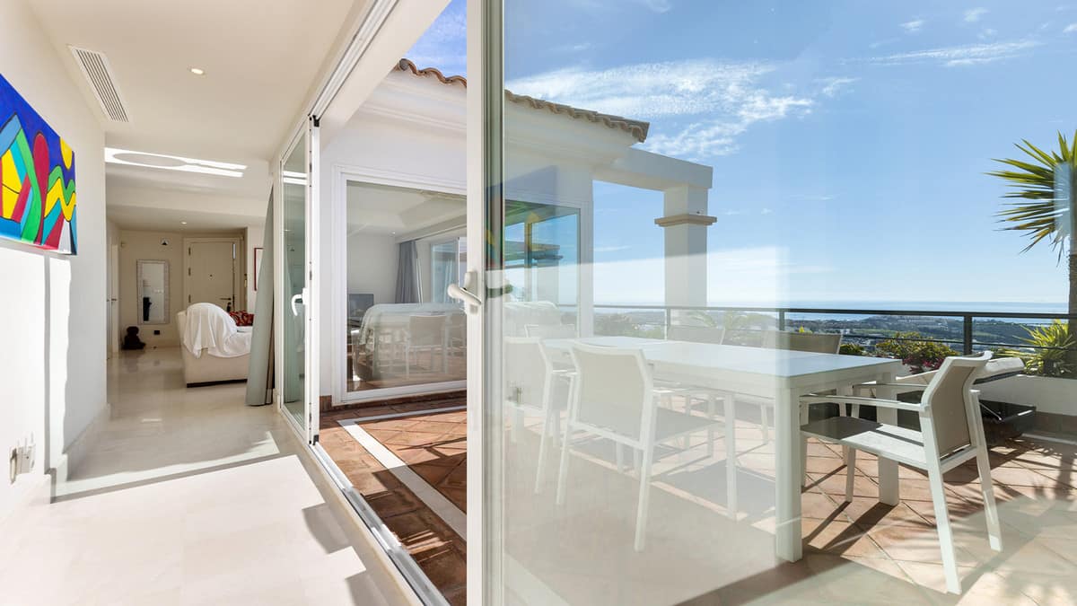 One of the highlights of this penthouse is the generous terrace space. It is a fantastic place to relax, dine al fresco, read a book or simply enjoy a glass of wine while taking in the views. From here you can enjoy panoramic views across the Casares mountains, the Doña Julia Golf course and the Mediterranean Sea.