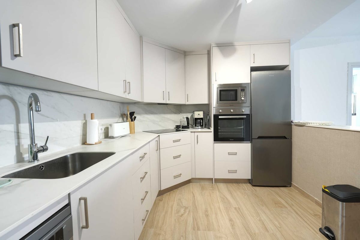 Apartment with 140 m2 inside and 210 m2 terrace features 3 bedrooms, the master bedroom is on the second floor and features an ensuite bathroom, a cloakroom, and a terrace, A fully equipped kitchen, 2 bathrooms, a guest toilet, and a living room with access to a huge southwest-facing terrace with incredible panoramic views of the sea and mountains.