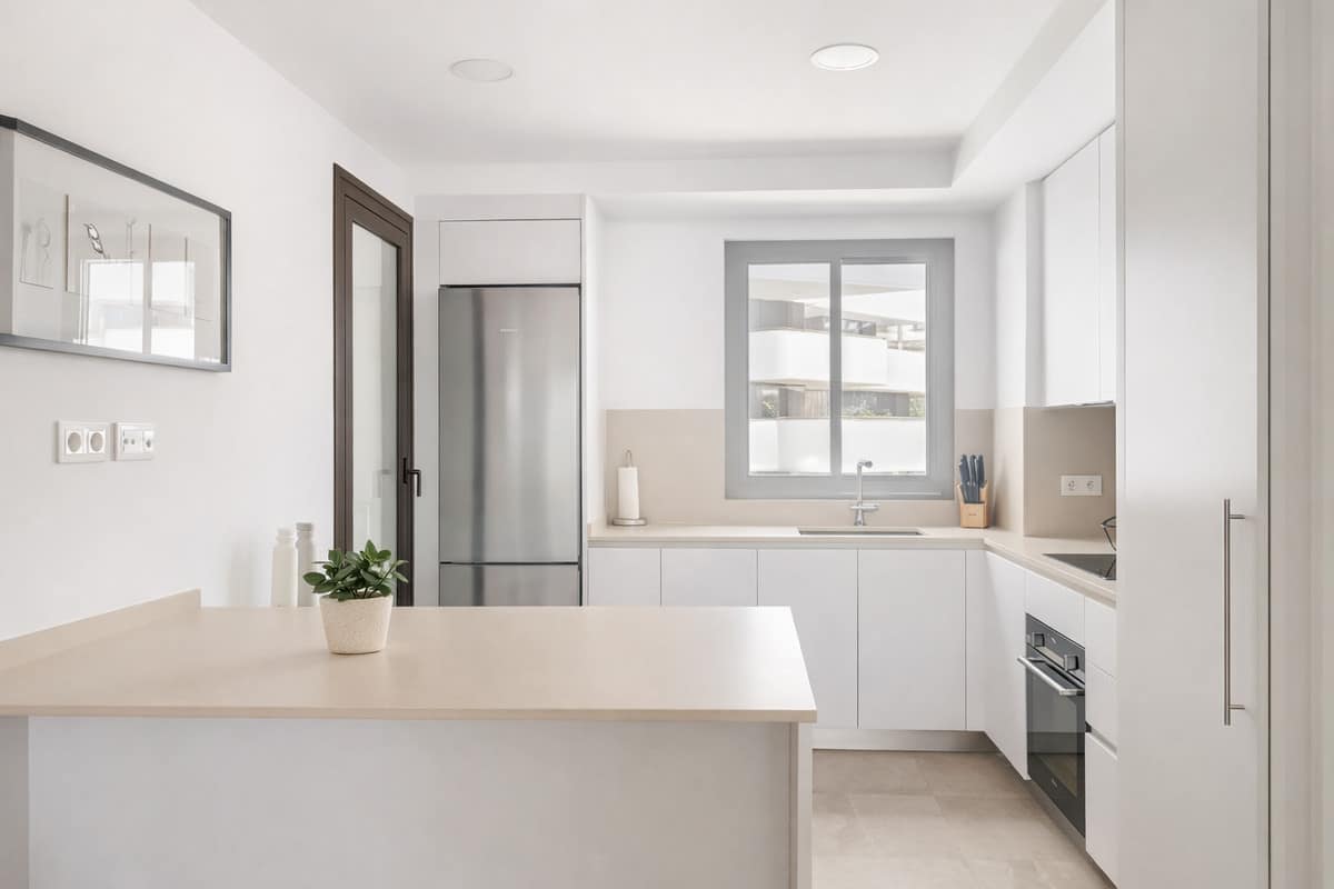 The finishes have been carefully selected: porcelain stoneware floors, white lacquered doors, exterior carpentry with double glazing, and motorized shutters in the living room and bedrooms. Additionally, it features ducted air conditioning with independent control, aerothermal system for hot water, and mechanical ventilation to ensure maximum comfort and energy efficiency throughout the year. The apartment includes 2 underground parking spaces and a large storage room, all within a gated complex that offers security and peace of mind.