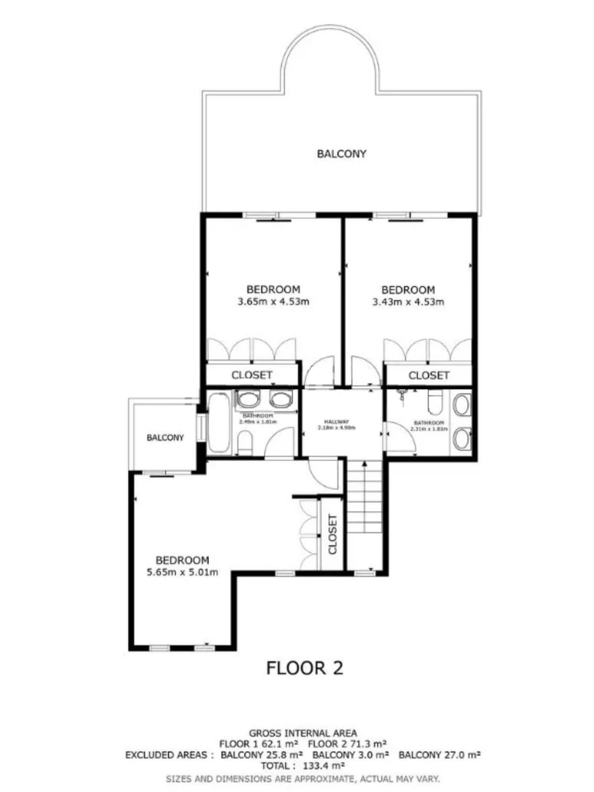 3 spacious bedrooms & 3 bathrooms