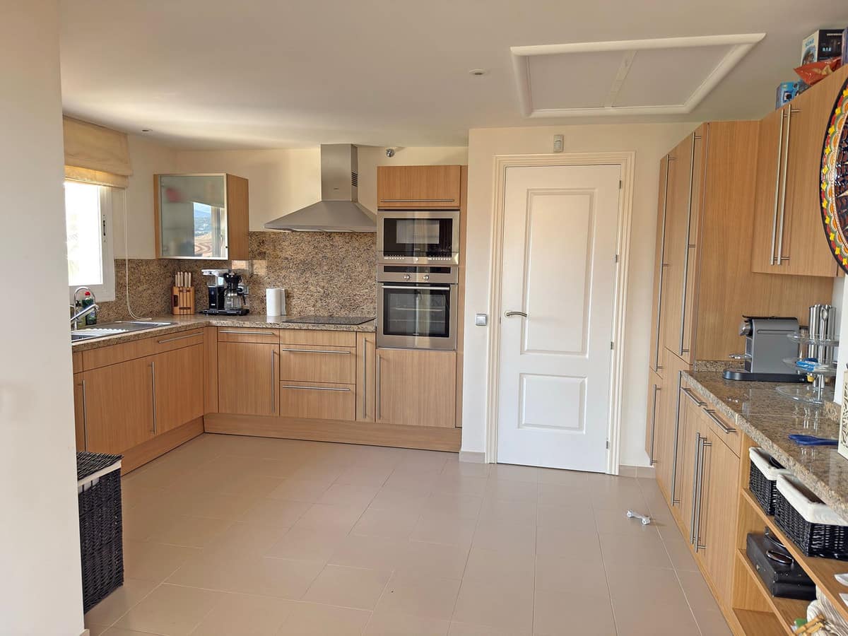 This 3-bedroom apartment features an open-plan design, seamlessly integrating a modern, fully equipped kitchen with the living area. The space opens onto a spectacular south-facing terrace and a private 80 m² garden, perfect for basking in the endless sunlight that characterizes the Costa del Sol.