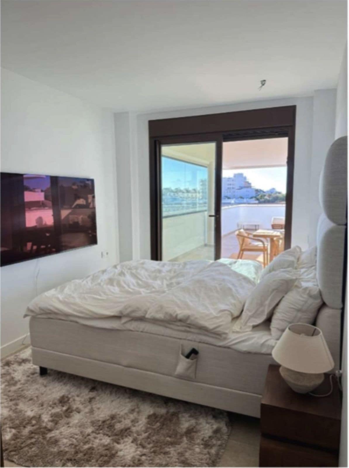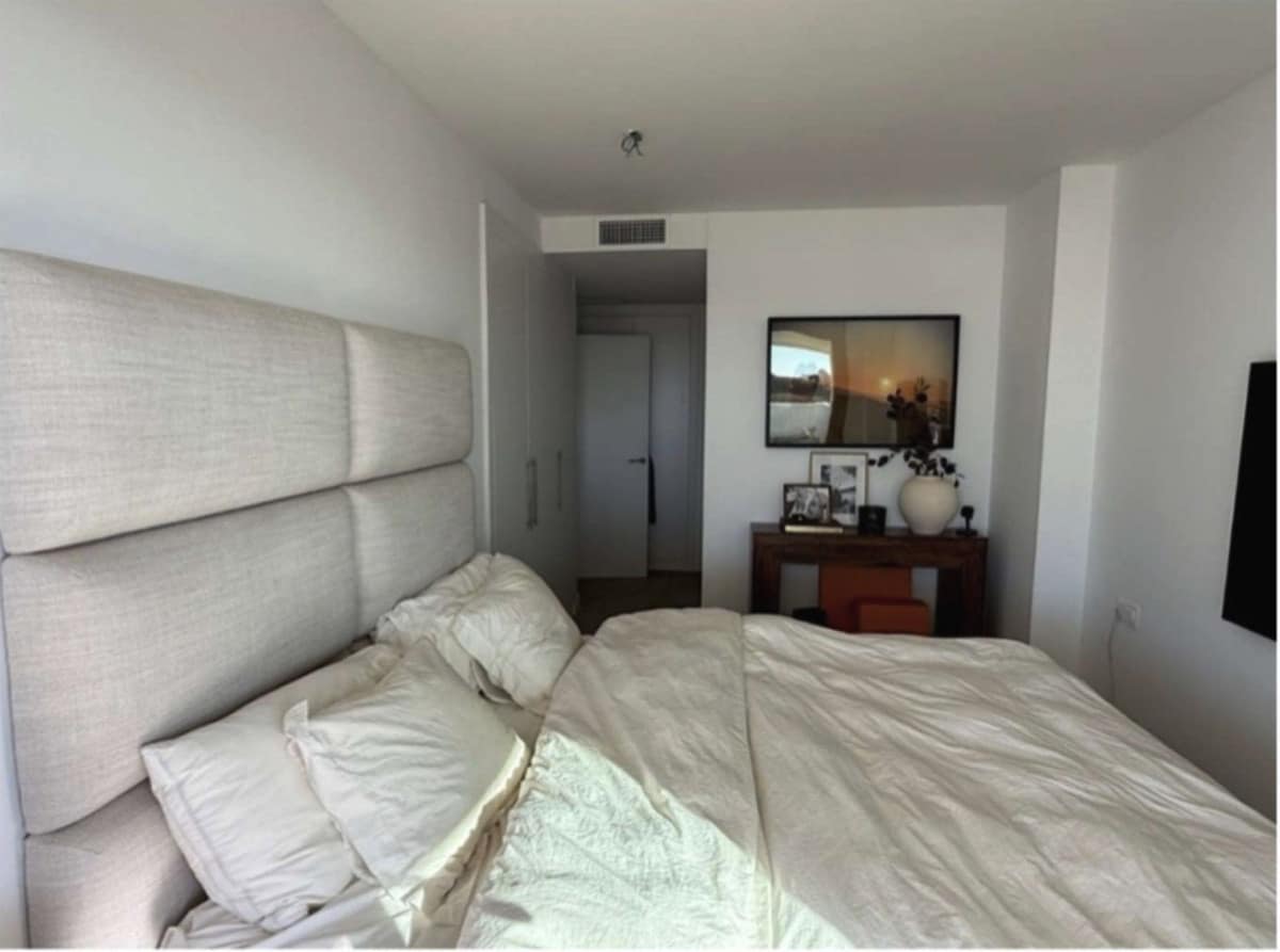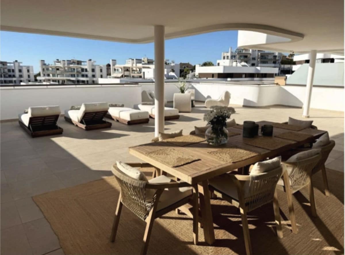 Ready to move in with utilities (water, electricity, internet) already connected, this property is an ideal primary residence, holiday home, or investment. The open-plan layout seamlessly integrates a spacious living area and kitchen, with large sliding glass windows flooding the space with natural light and leading to the standout feature: an impressive 115 m² terrace that serves as an outdoor living room for much of the year. Partially covered and with one side glazed for wind protection and privacy, it's perfect for al fresco dining, lounging, or relaxation, even on warmer or breezier days. Enjoy unobstructed panoramic views of the Mediterranean Sea, nearby park, and modern architecture of Las Mesas, with minimal overlooking from neighbouring buildings.