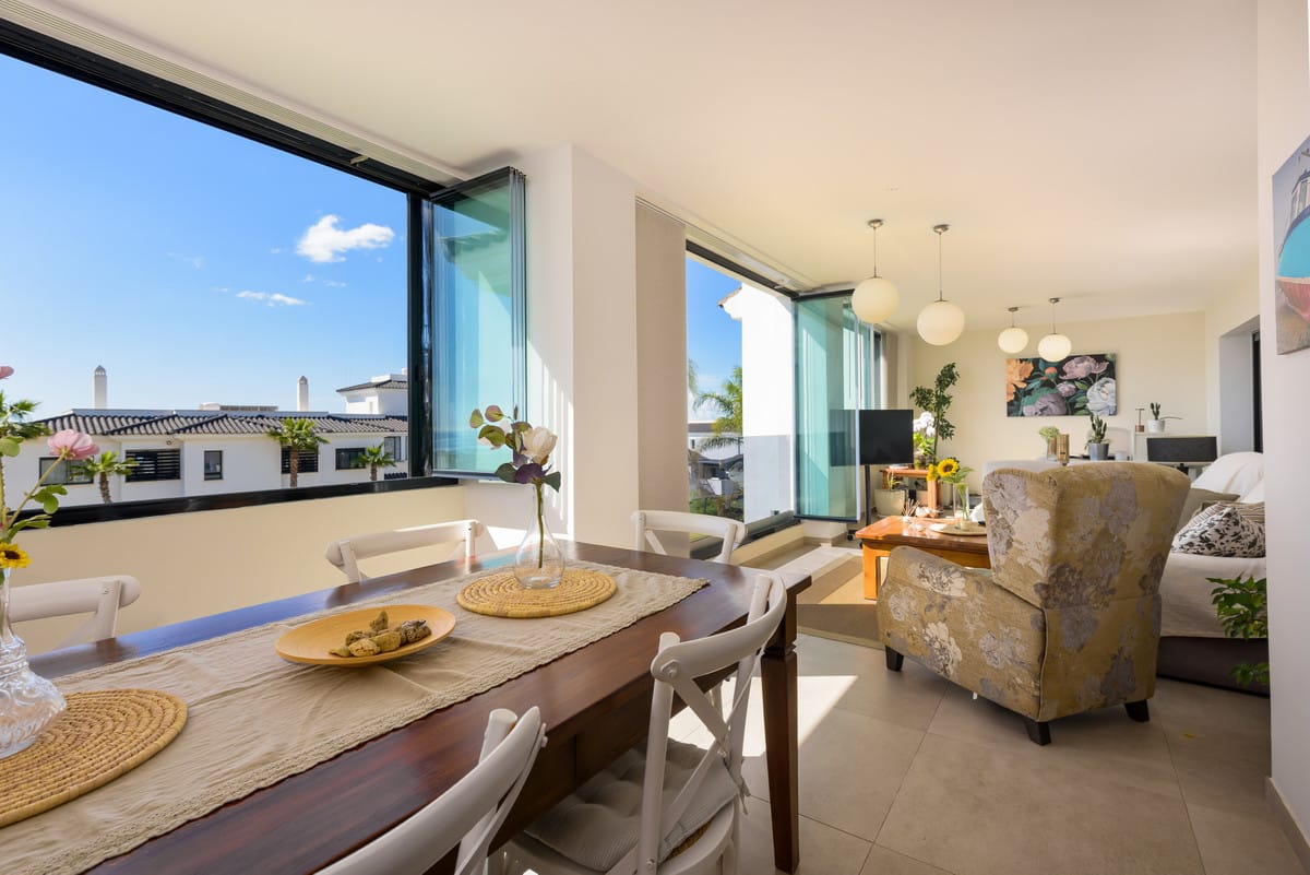 This spacious home consists of 3 bedrooms and 2 full bathrooms, one of them en suite, a guest toilet with double sink, a large living room of almost 40m2 which has been minimized to make a large dressing room for the master bedroom. A state-of-the-art kitchen fully equipped with exclusive high-quality “Neff” appliances gives a modern and clean touch. We can add that from the secondary bedrooms are quite spacious (+13m2) we see Sierra Bermeja and from the master bedroom you can see some impressive sunrises with direct access to the terrace.