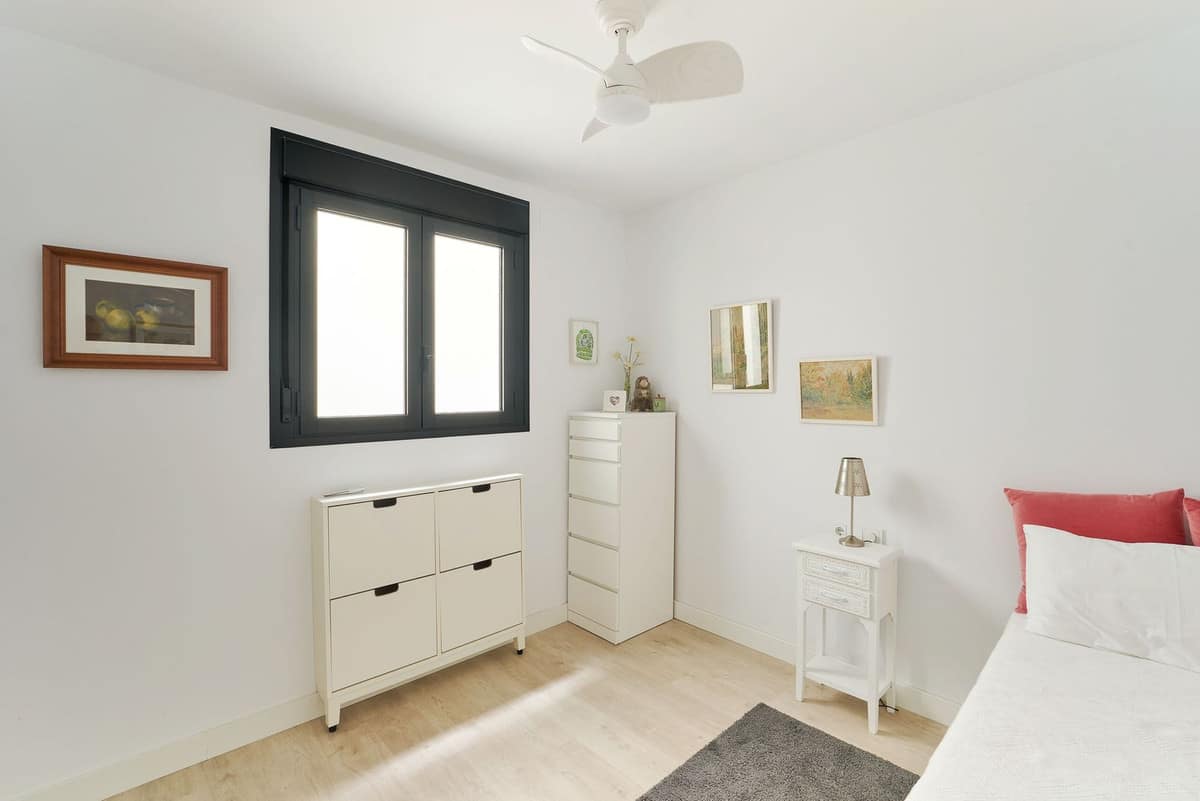 The property features a spacious terrace facing the morning sun, offering open views of the sea, the swimming pool, and the surrounding tropical gardens. Part of the terrace is fitted with removable glass panels, allowing you to enjoy the space open in summer or enclosed during winter—perfect for year-round use.