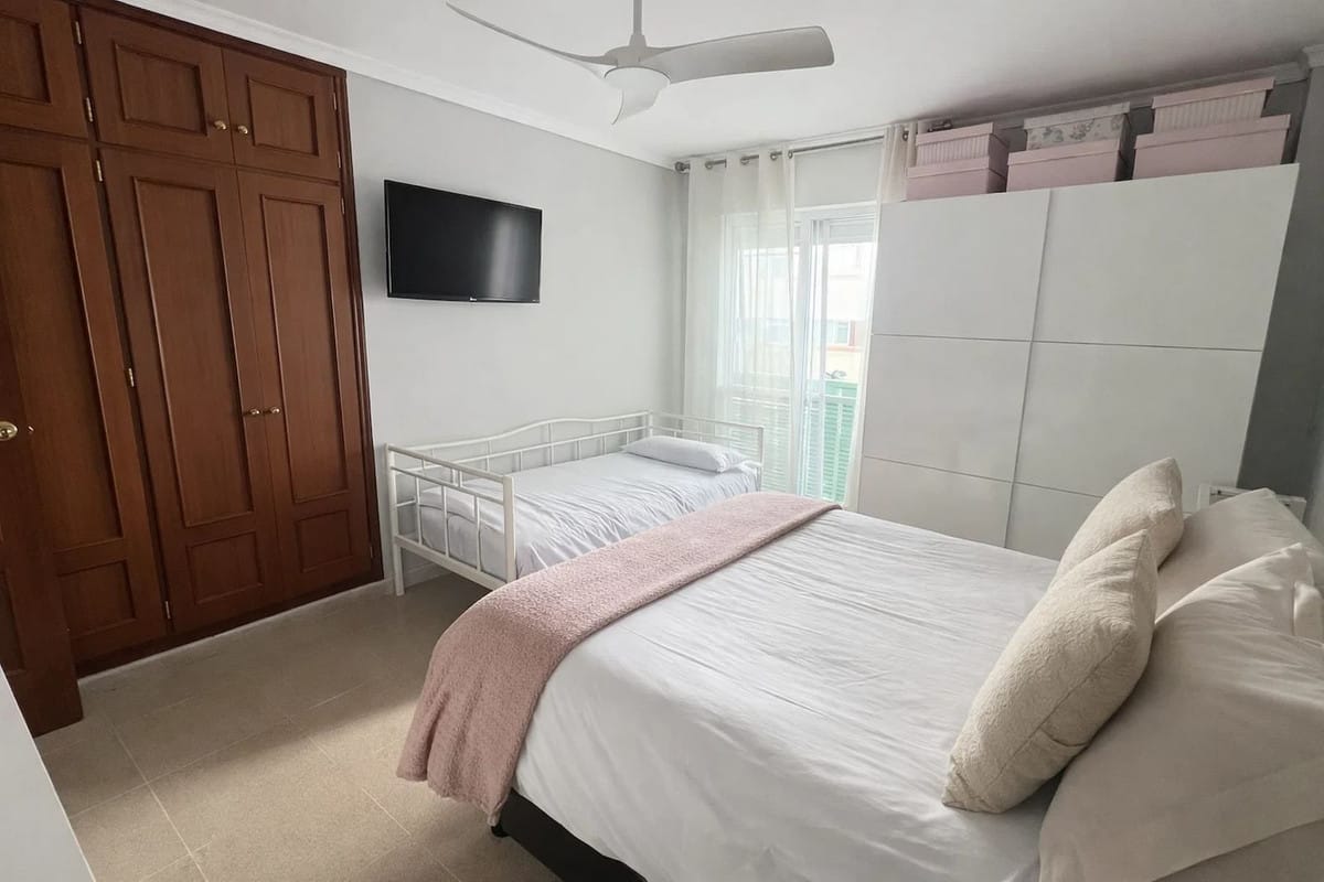 The property benefits from a private terrace, accessed from one of the bedrooms, offering a pleasant outdoor space to relax and enjoy the Mediterranean climate. Although compact in size, the terrace provides enough room for a small seating area, making it ideal for morning coffee or unwinding in the evening. Its position allows for natural light and fresh air, adding an additional sense of openness to the apartment while still maintaining privacy.