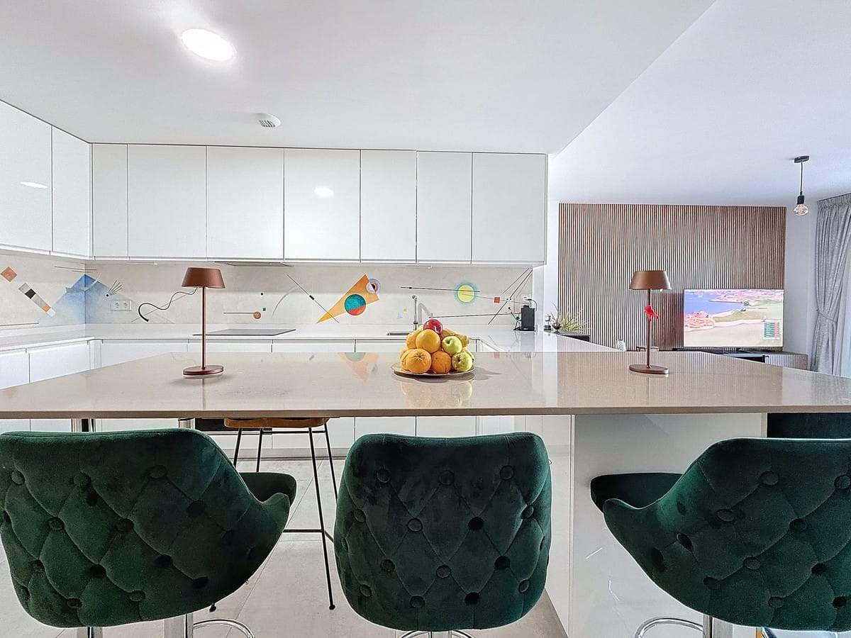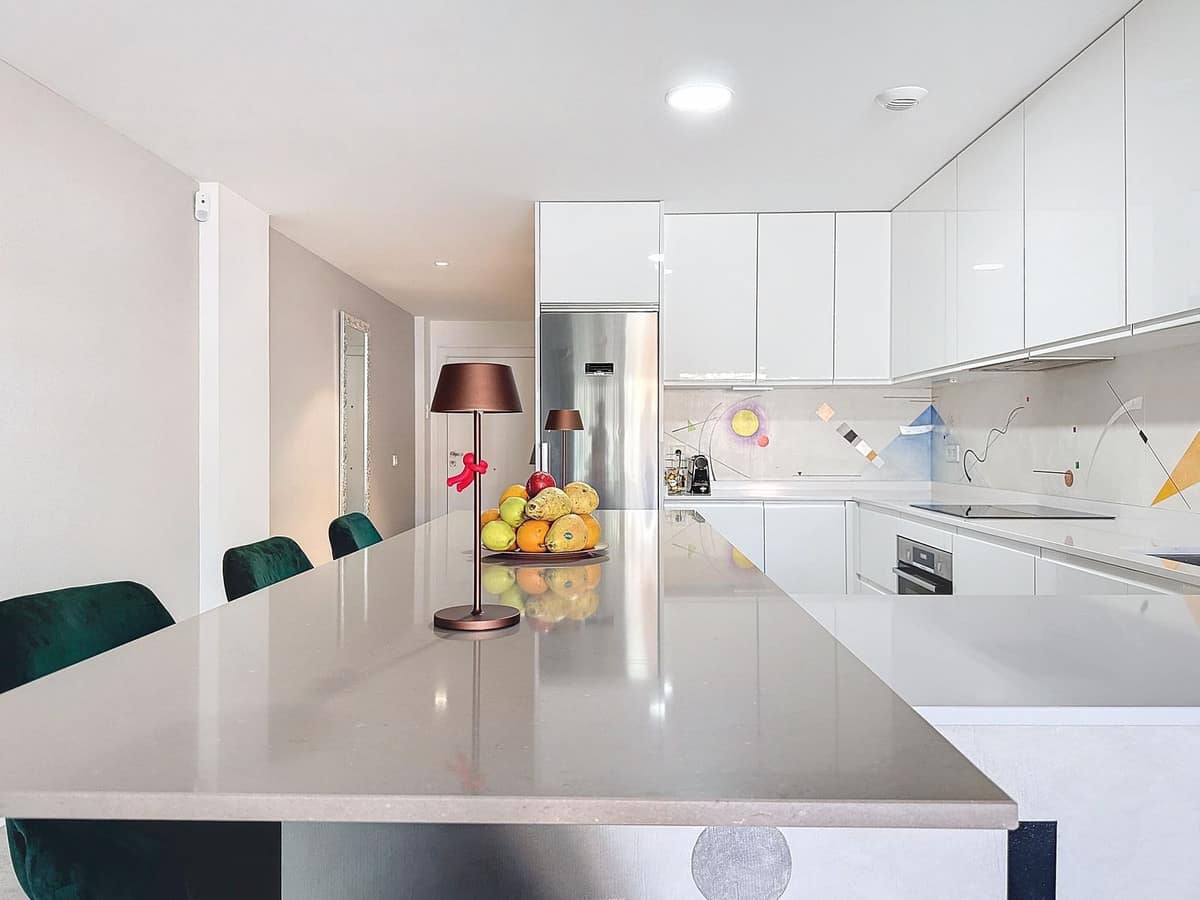 Thoughtful improvements have been made to create a cozy, elegant atmosphere, with an open-plan living area filled with natural light and a fully equipped kitchen for preparing meals and entertaining. For ultimate comfort, the apartment includes efficient aerothermal heating and cooling, and residents enjoy access to exclusive amenities, such as adult and children’s pools, a gym, and a relaxing sauna.