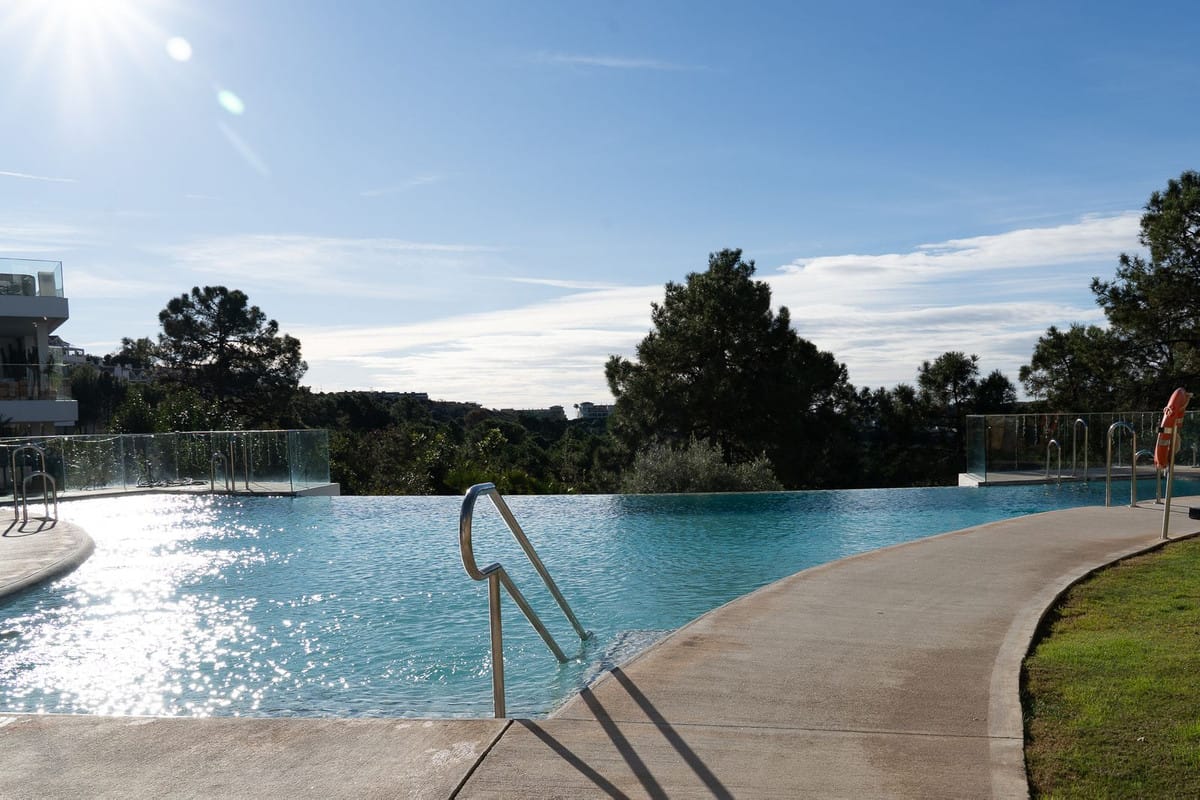 The open living area with modern kitchen is perfect for relaxing and entertaining. Sold fully furnished with premium-quality furniture, the apartment is completely move-in ready. It features 3 spacious bedrooms with built-in wardrobes, 3 bathrooms, 2 terraces, a luxurious infinity pool, 2 private parking spaces, and a storage room.