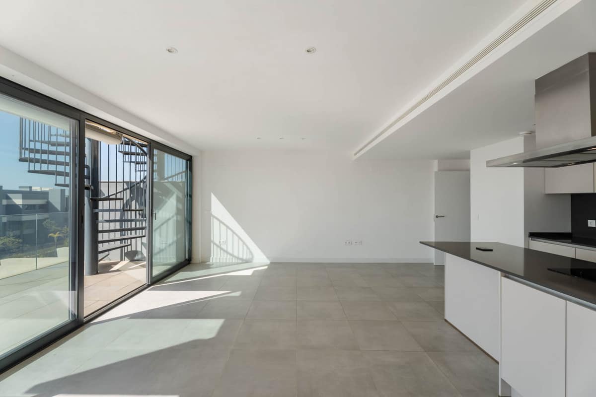 Penthouse El Oasis is a contemporary three-bedroom penthouse located on the New Golden Mile, in the Selwo area. Positioned within a modern residential complex, this property combines clean architectural lines with functional indoor and outdoor living spaces, designed for comfort and privacy.