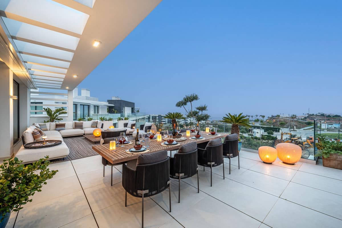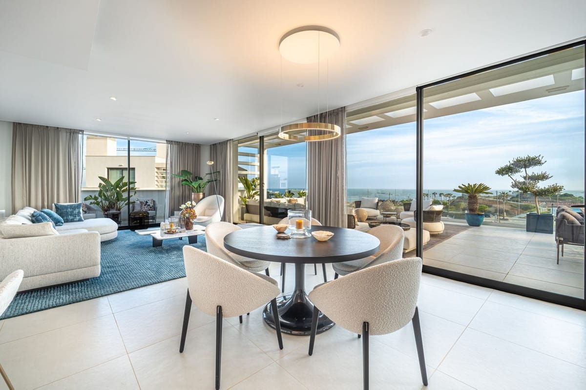 This modern 3-bedroom, 2-bathroom property offers a spacious open-plan layout with a bright living area and kitchen that flows seamlessly onto a generous terrace with beautiful sea views.