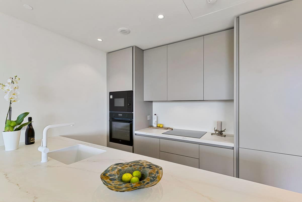 This contemporary apartment offers three well-proportioned bedrooms and an open-plan kitchen seamlessly connected to the living area, creating a natural flow between everyday life and social moments. Large windows invite in natural light and enhance the sense of space, making the home feel both welcoming and refined.