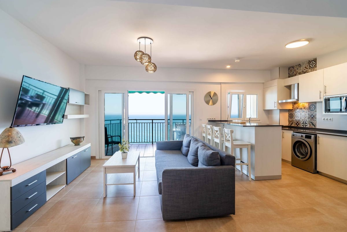 The property is distributed into 3 bedrooms, 2 full bathrooms (one of them en suite), an independent kitchen, and a spacious living-dining room with direct access to the terrace. It has been recently renovated and features air conditioning in all rooms and new awnings, ensuring maximum comfort all year round.