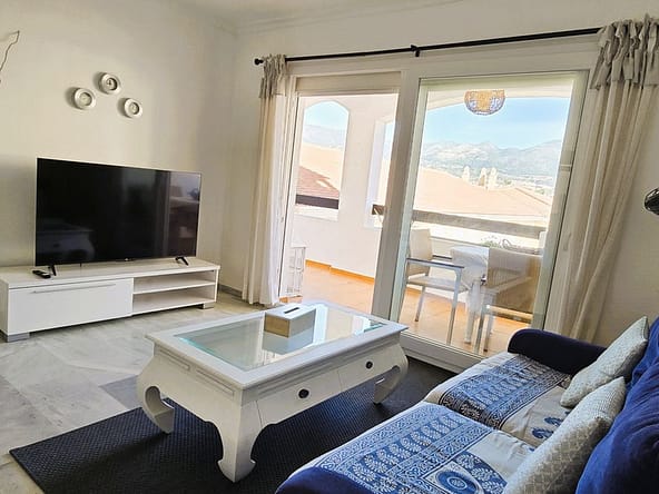 Straight ahead is the spacious and open living area with stunning views over the southwest part of Fuengirola and the sea.