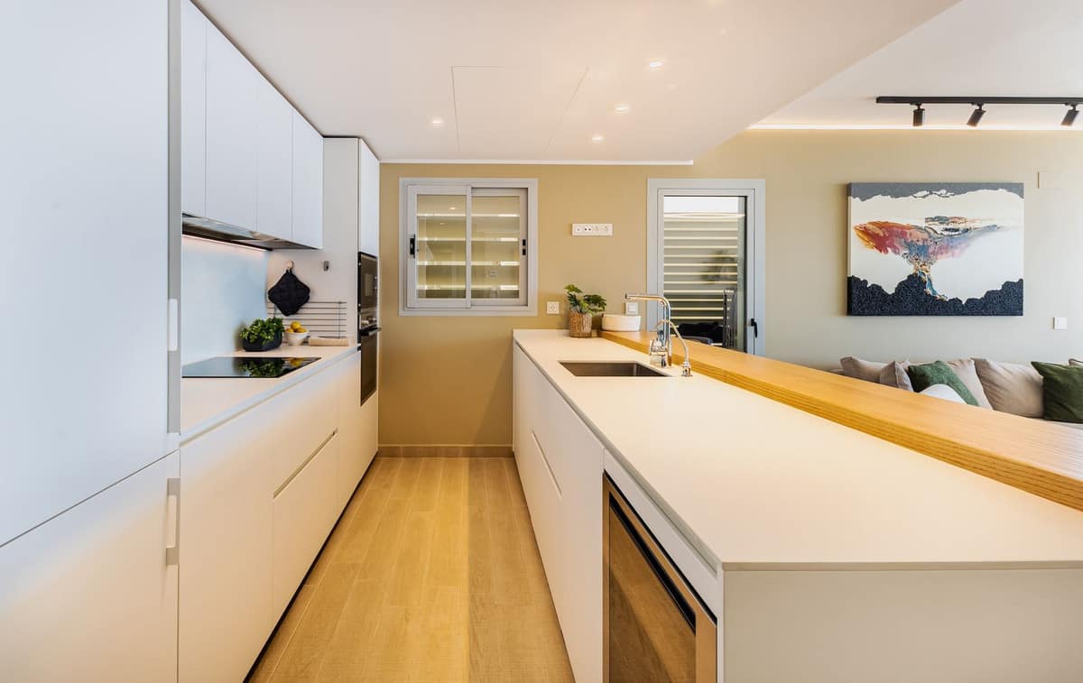 The home features a spacious living-dining room with access to a private terrace, perfect for enjoying the sun and the Mediterranean climate.