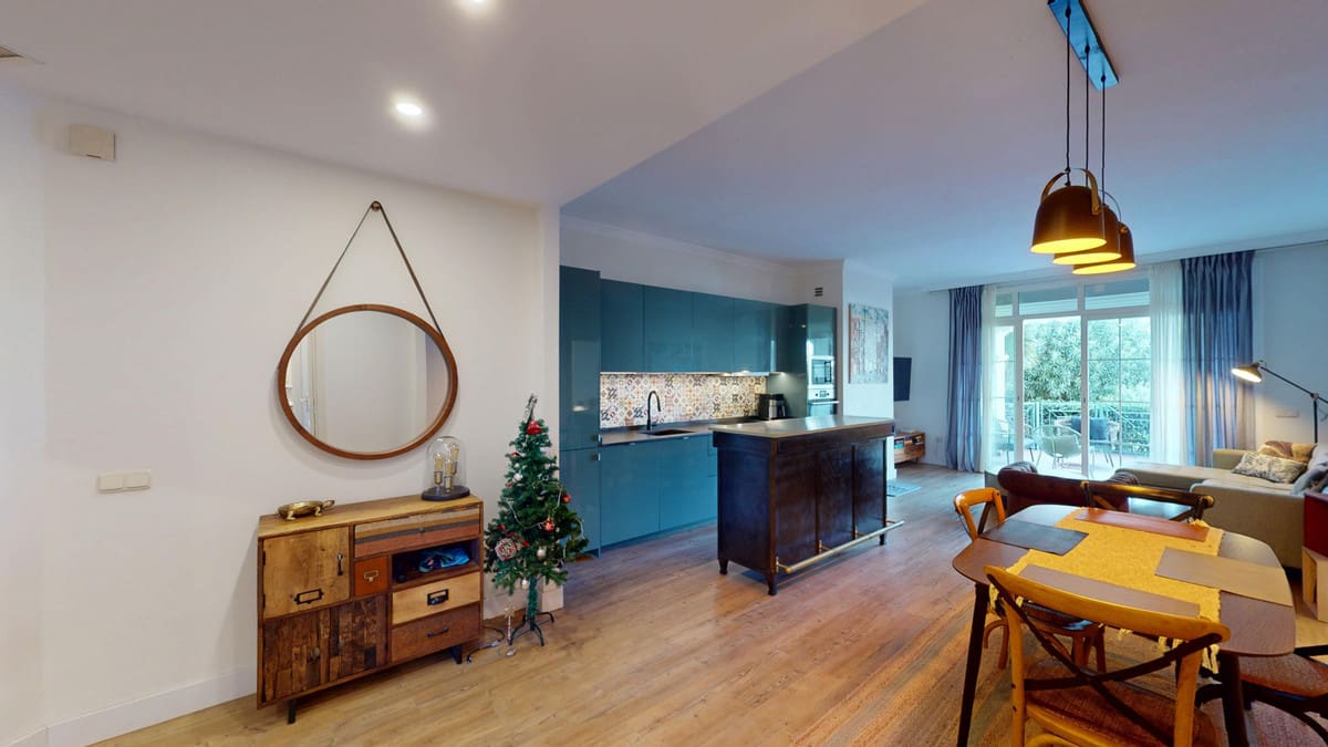 The property has been tastefully refurbished, with an optimized layout now offering three bedrooms and a modern, fully fitted open-plan kitchen seamlessly connected to the living area, creating a bright and spacious atmosphere.