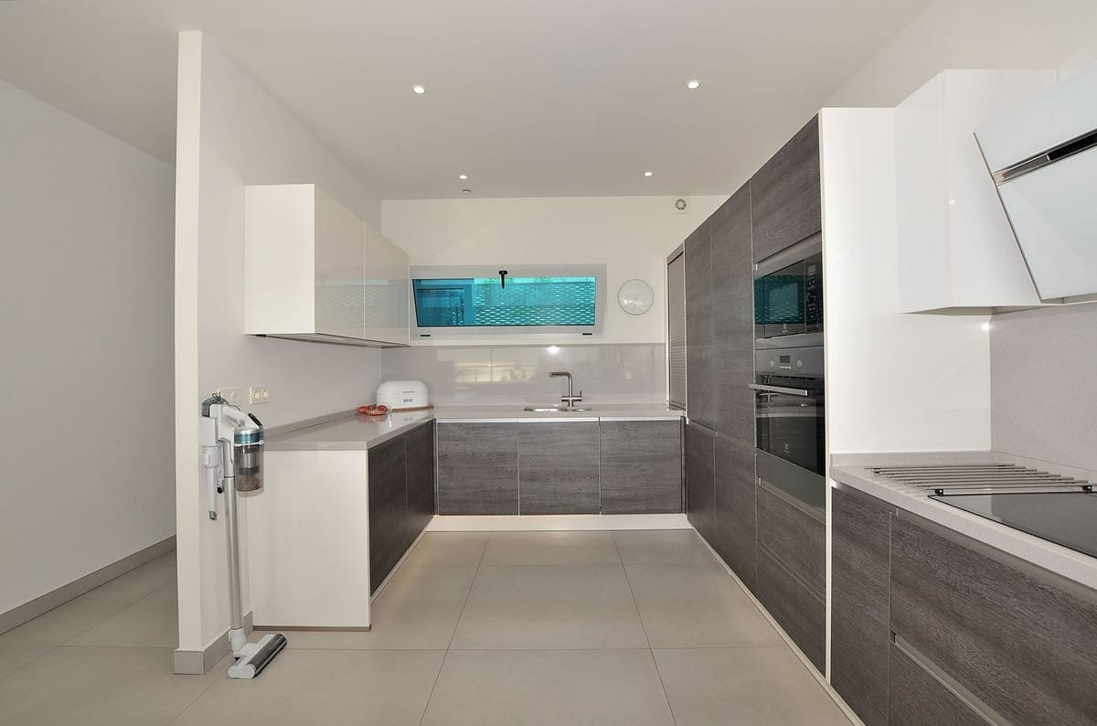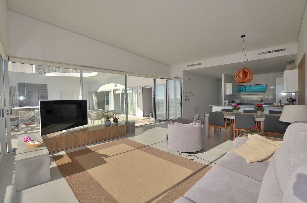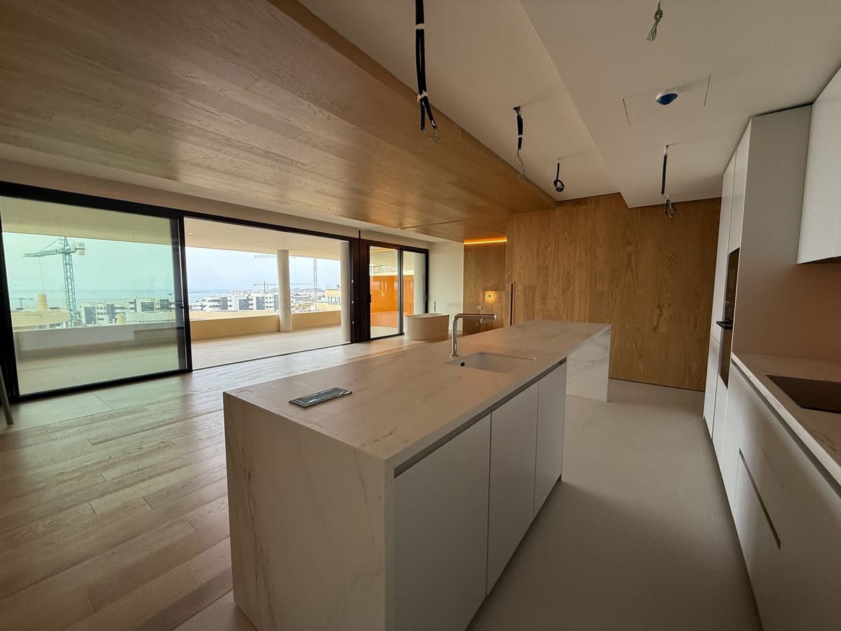 Be among the very first to reserve this stunning brand-new, just-completed 3-bed, 2-bath apartment. Spread across 140 m² built, the open-plan living and kitchen area is bright and spacious, with floor-to-ceiling sliding glass doors that seamlessly extend your living space onto the elegant terrace. From here — and from the living room itself — you’ll enjoy beautiful views of the community pool and partial sea views, creating a serene, sunlit atmosphere throughout the day. Included are 2 corner-space parking bays, a private storage unit, and a pre-installed EV car charger — everything you need to move in with ease.