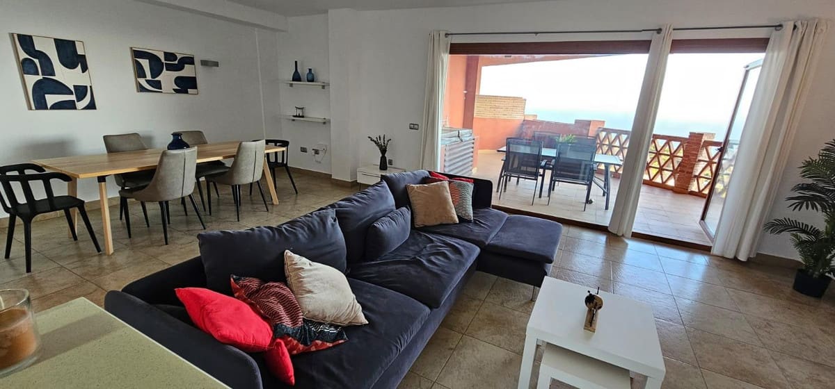 We present a spacious duplex penthouse for sale in the Altos del Higuerón area, Benalmádena. The house has an entrance with a kitchen, bedroom, bathroom, living room and dining room with access to a beautiful terrace with wonderful open views. We go up to the first floor and find two bedrooms with two bathrooms. Suite. Dressing room in the master bedroom. Built-in wardrobes. Alarm, central air. The house is sold with two closed garage spaces in the same community. Gardens and two community pools. Ready to move in!
