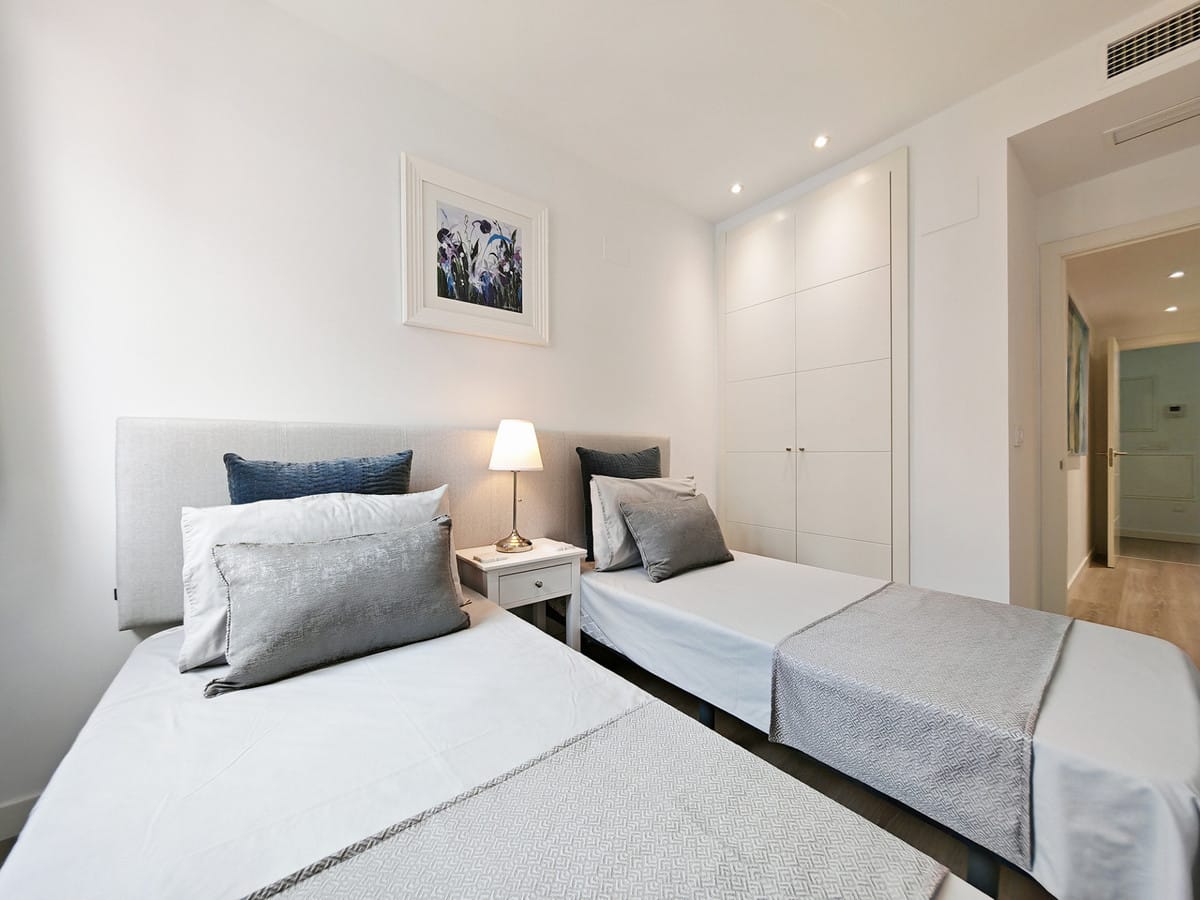 The gated community has a concierge on site during the day. The beautifully maintained gardens include three outdoor pools, an indoor pool, a social lounge with barbecue area, sauna, gym, paddle tennis court, and a playground for the little ones.