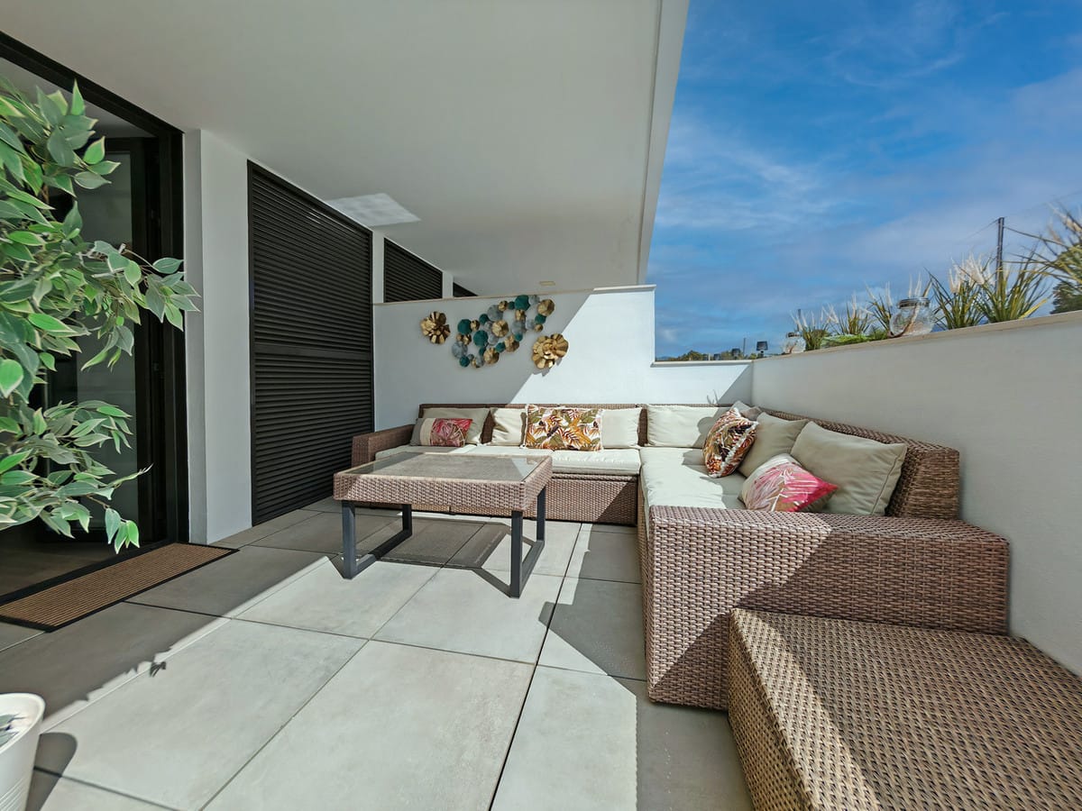 Welcome to this bright and modern corner apartment in the sought-after Las Banderas complex in La Cala de Mijas! The property features 3 bedrooms, 2 bathrooms, and a spacious terrace with stunning mountain and sea views.