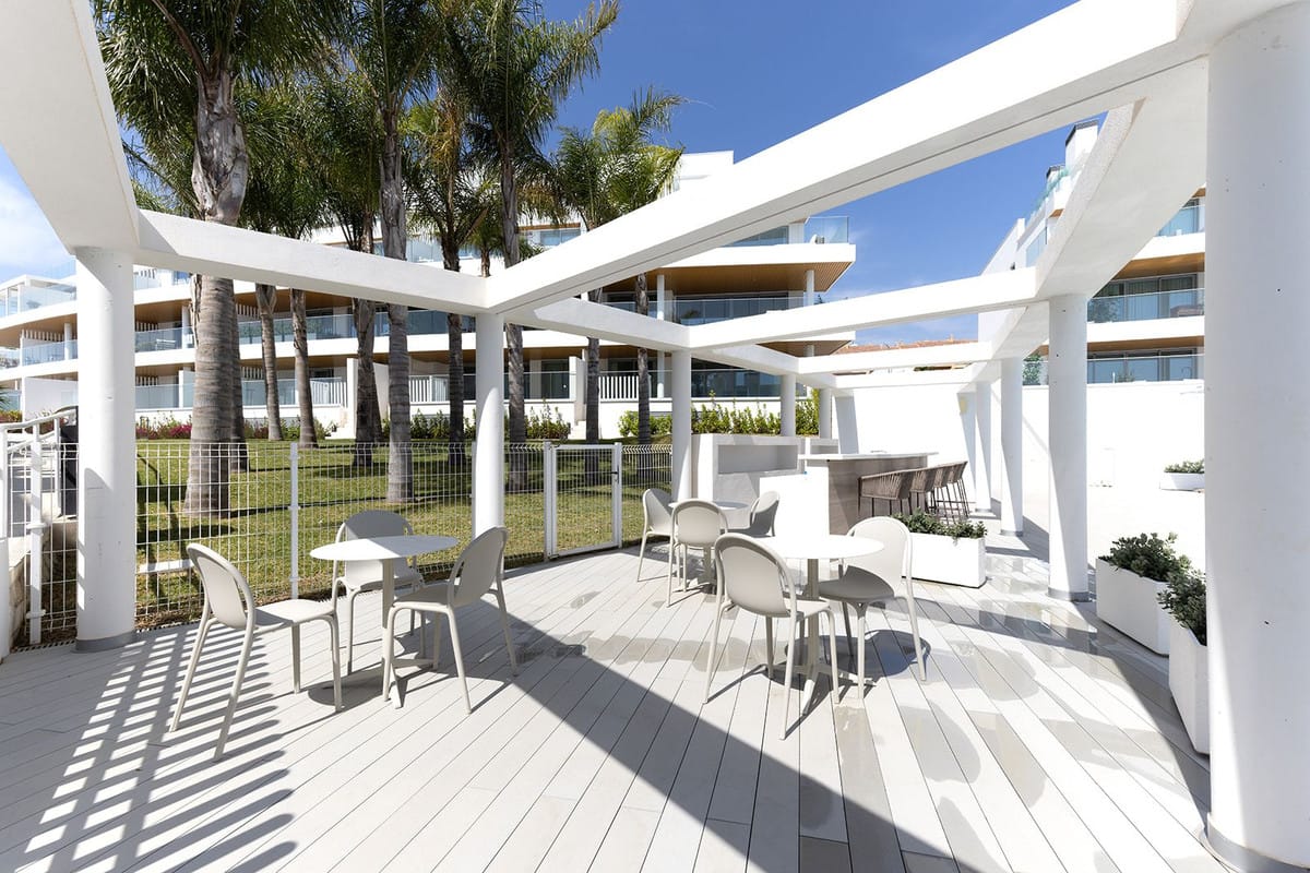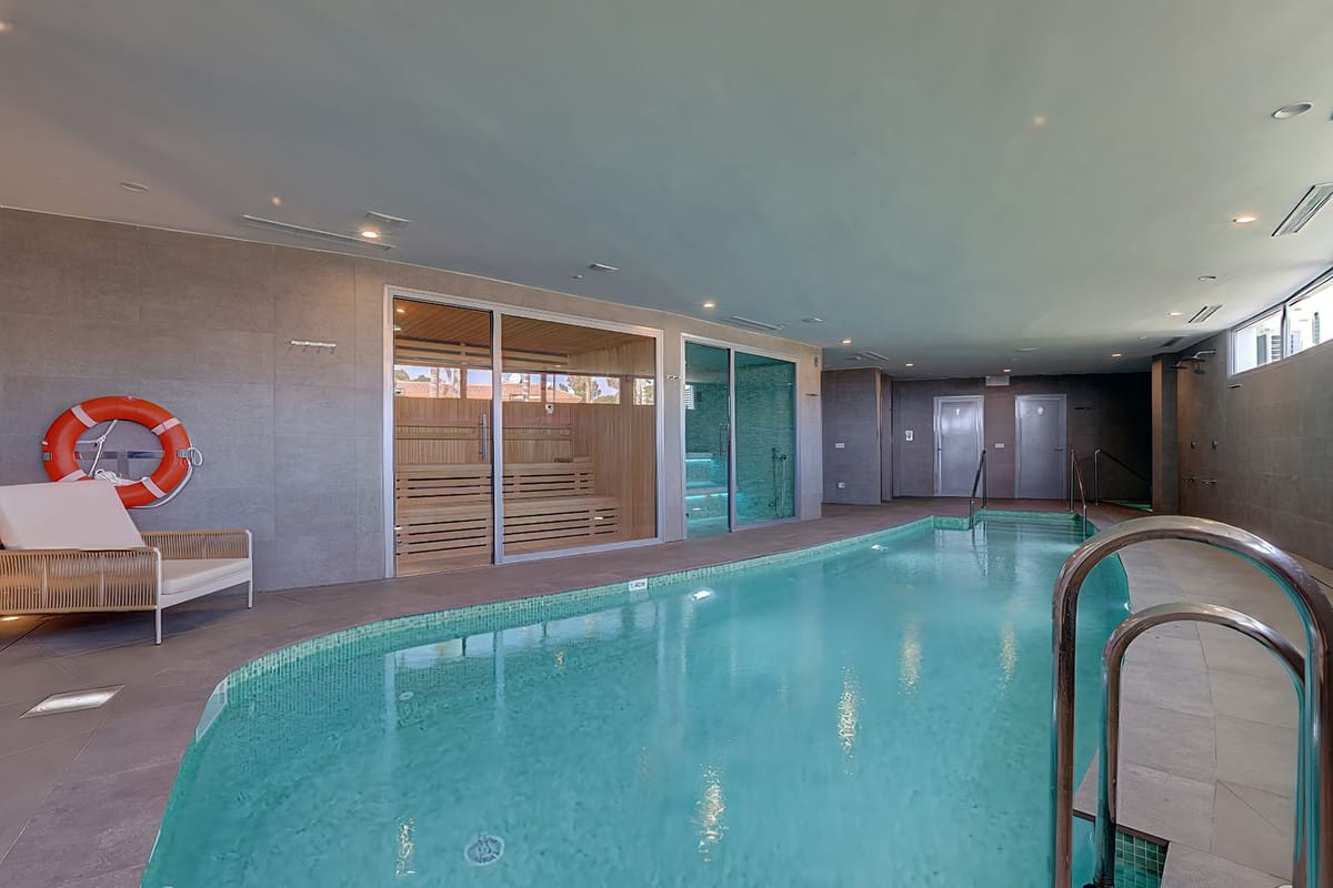 The property is equipped with air conditioning throughout with an advanced AirZone system, a fireplace for cozy evenings, underfloor heating in the bathrooms, and electric shutters. Ideally positioned close to one of the communal pools, this home combines comfort, privacy, and excellent on-site facilities. Included is a 20m2 storage room plus underground parking space.