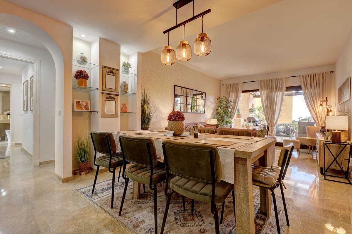 Inside, the home impresses instantly. The newly renovated, made-to-measure designer kitchen is a real showstopper—crafted with quality, style, and functionality for those who love to cook, host, and enjoy everyday living at its best. The open-plan living and dining area flows beautifully onto a covered terrace with captivating mountain, golf, and pool views, making indoor-outdoor living effortless.