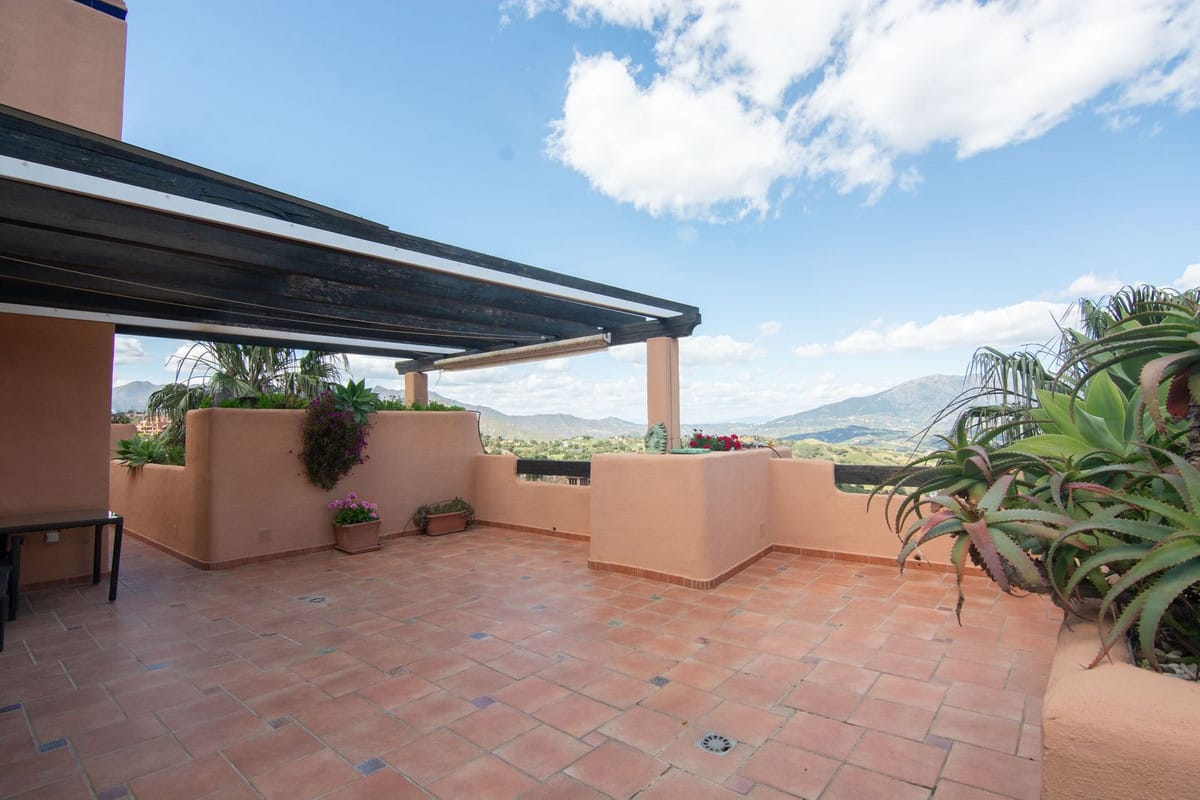 This elegant three-bedroom apartment with 2 private parkings is situated in the sought-after area of La Mairena, Marbella East, offering a harmonious blend of comfort, style, and convenience. The property boasts a generous built area of 148m² complemented by a spacious 53m² terrace, providing ample space for both indoor and outdoor living. Located within a secure gated community, residents benefit from a peaceful environment with mature communal gardens and a large communal pool, perfect for relaxation and leisure.
