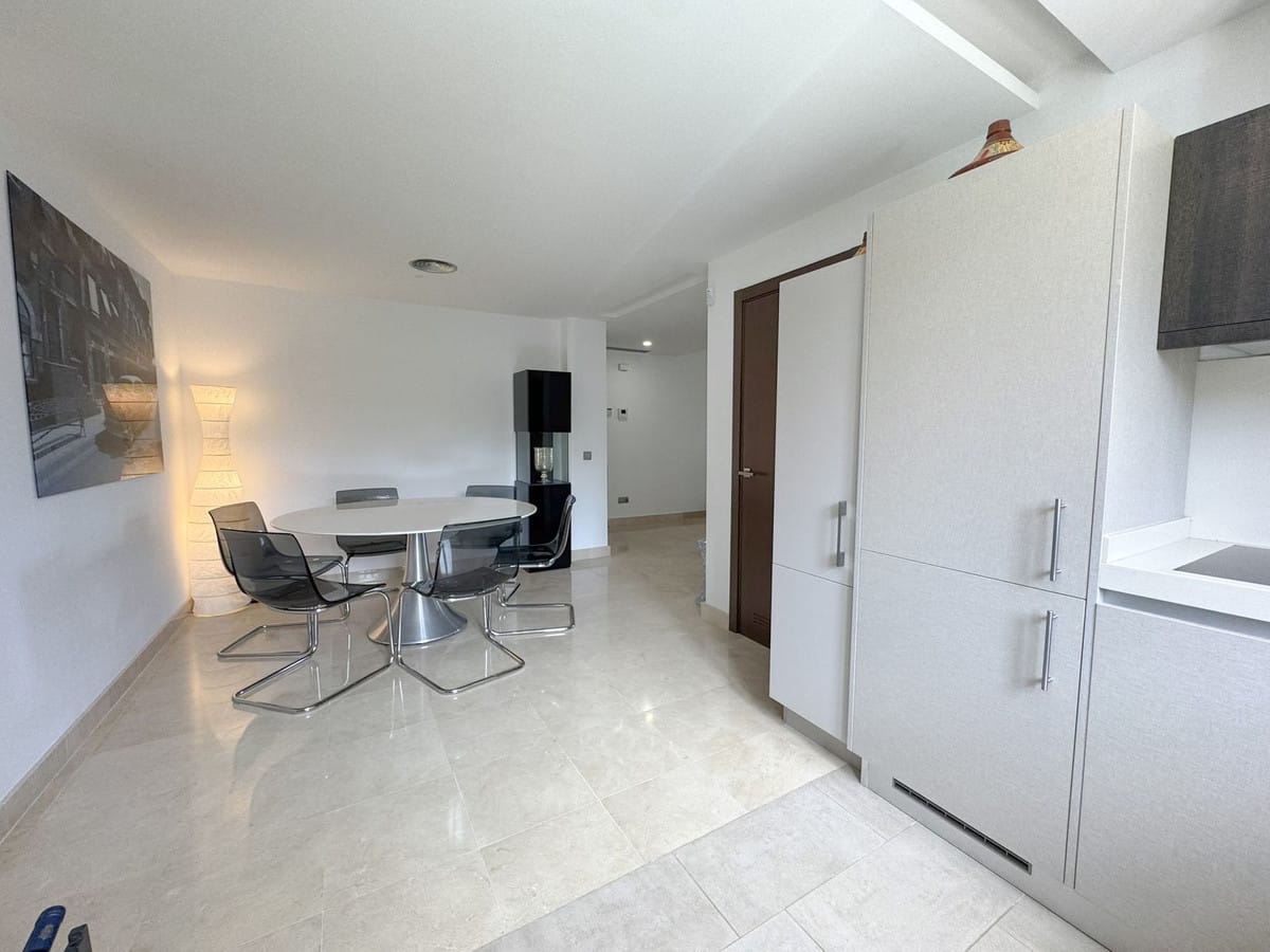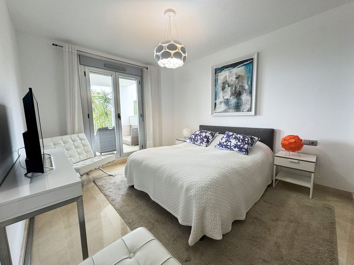 The master bedroom is both spacious and elegant, featuring direct access to the terrace, a large walk-in dressing room, and a luxurious en-suite bathroom with a walk-in shower and a bathtub with an additional shower overhead. The 2 other bedrooms are well-sized, with fitted wardrobes, and is served by an adjacent bathroom equipped with a large walk-in shower.