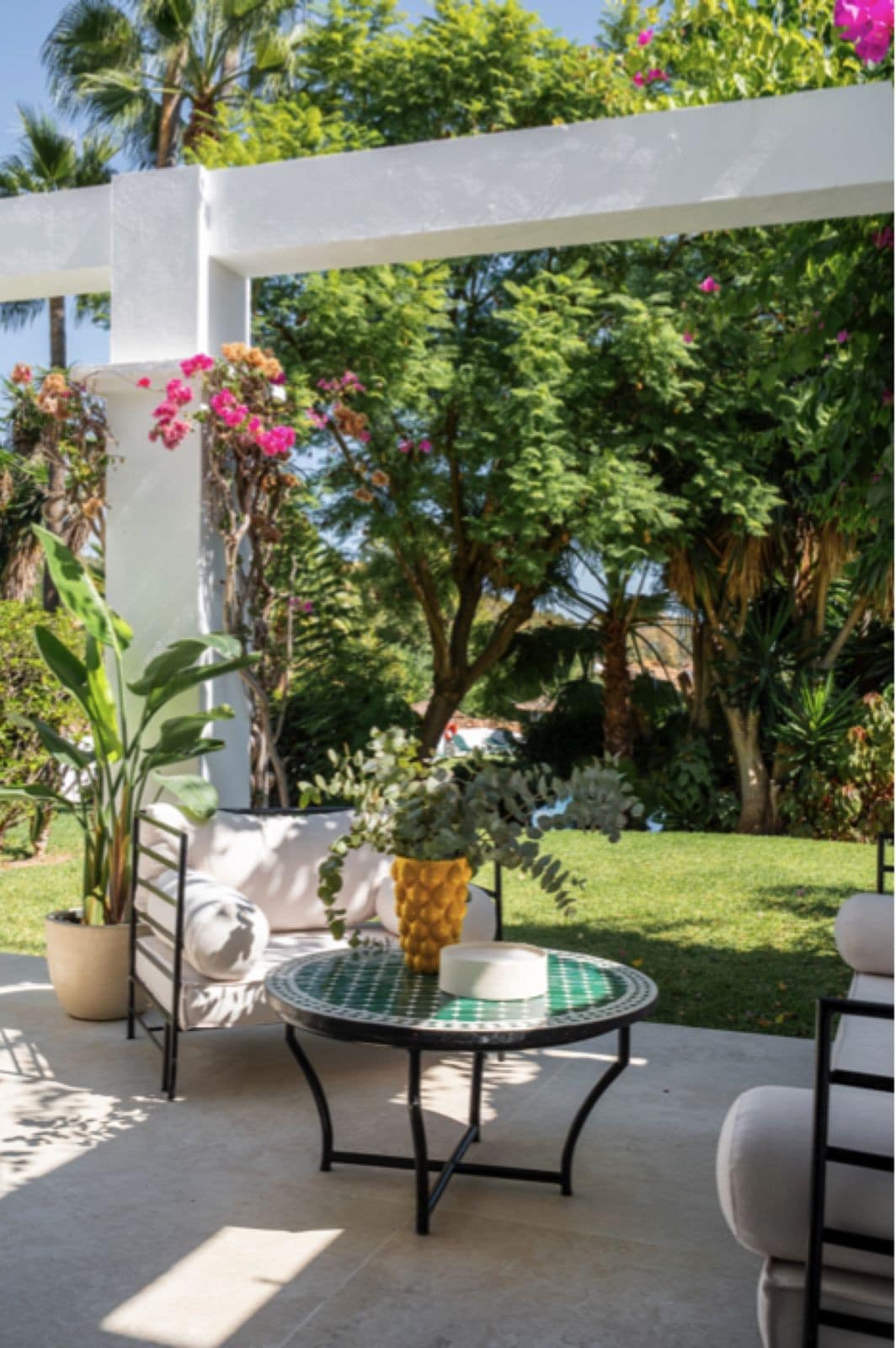 Private terrace surrounded by lush vegetation