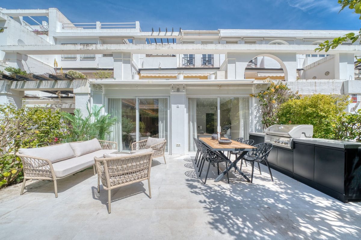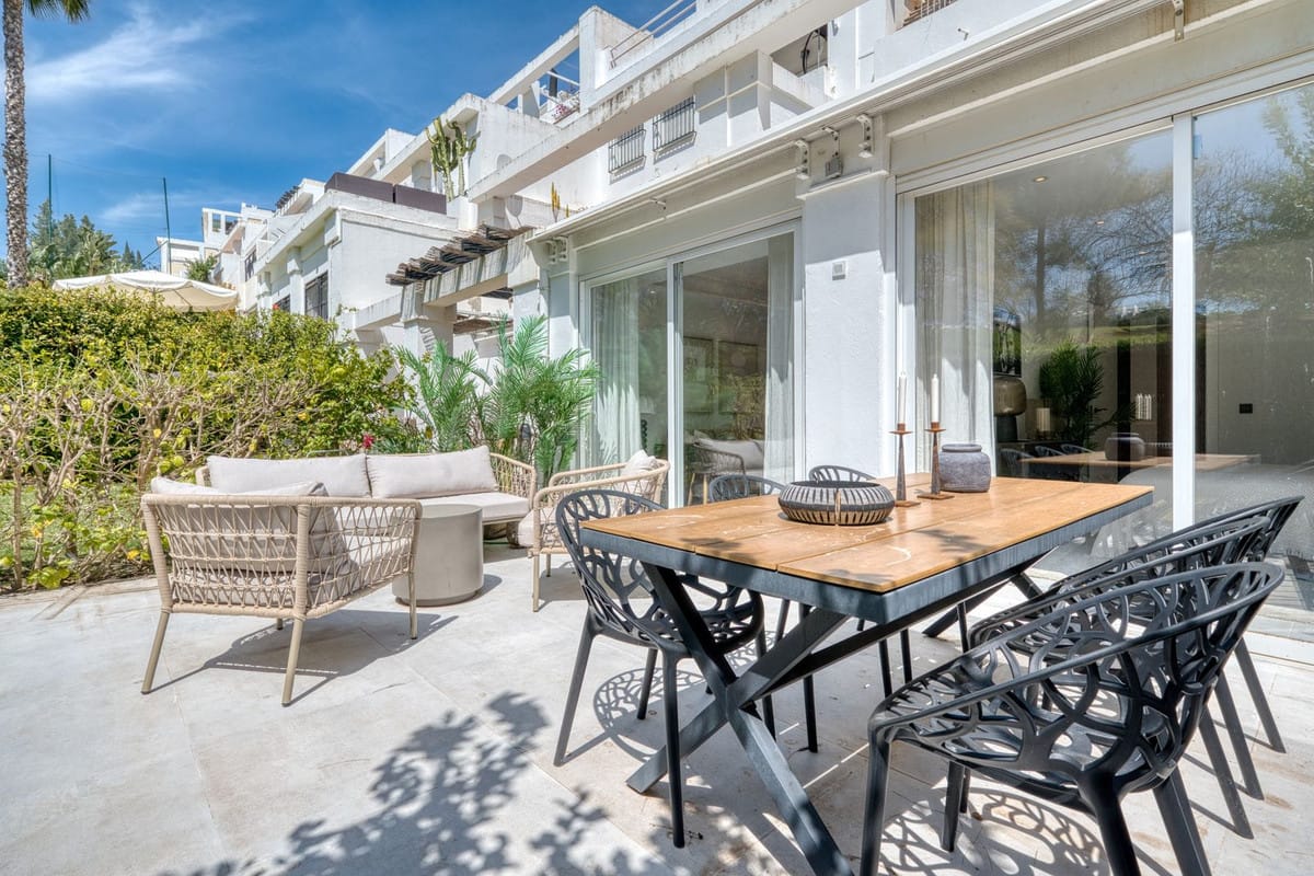 The expansive, completely revamped terrace extends from both the lounge and master suite, offering breathtaking panoramic views of the Golf Valley, Mediterranean Sea, and the iconic La Concha Mountain.