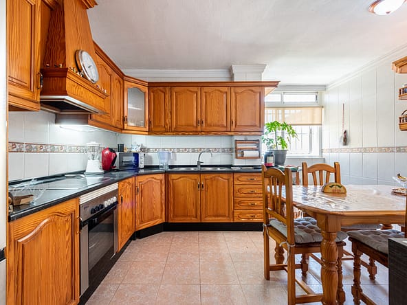 The apartment boasts three spacious bedrooms, including a master bedroom with an en-suite bathroom, and an additional family bathroom. The interiors feature an open-plan living area with wooden floors and glass doors that lead to a private terrace, perfect for enjoying the serene country and mountain views. The fully fitted kitchen is equipped with modern appliances, while fitted wardrobes and a storage room provide ample space.