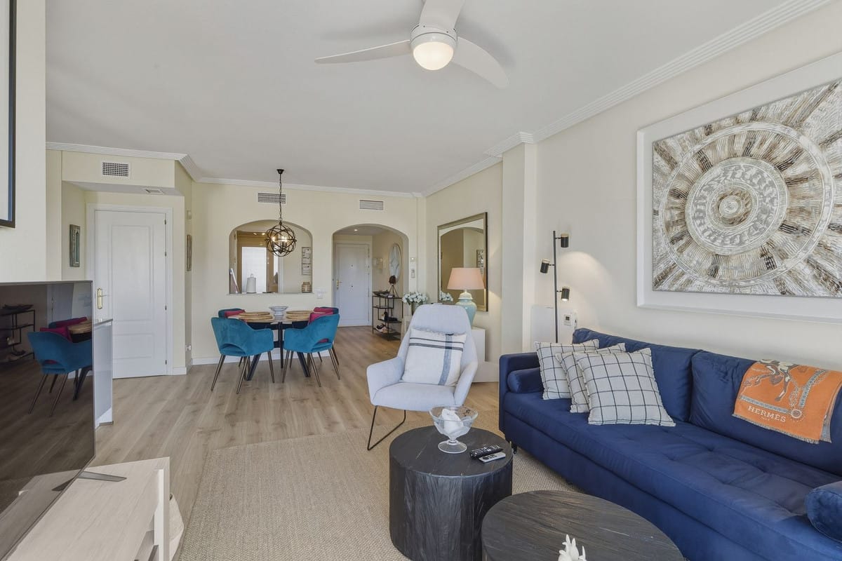 This elegant first-floor apartment in Los Arqueros, Costa del Sol, offers the perfect blend of modern comfort and resort-style living. Located in a sought-after frontline golf setting and enjoying a privileged southwest facing orientation, the property benefits from all-day sunshine and sea views, the surrounding mountains, immaculate golf fairways, landscaped gardens and the communal pools. It is set within a secure, gated community with 24-hour security, just a short drive from local shops, Benahavís village and the vibrant amenities of Marbella and Puerto Banús.
