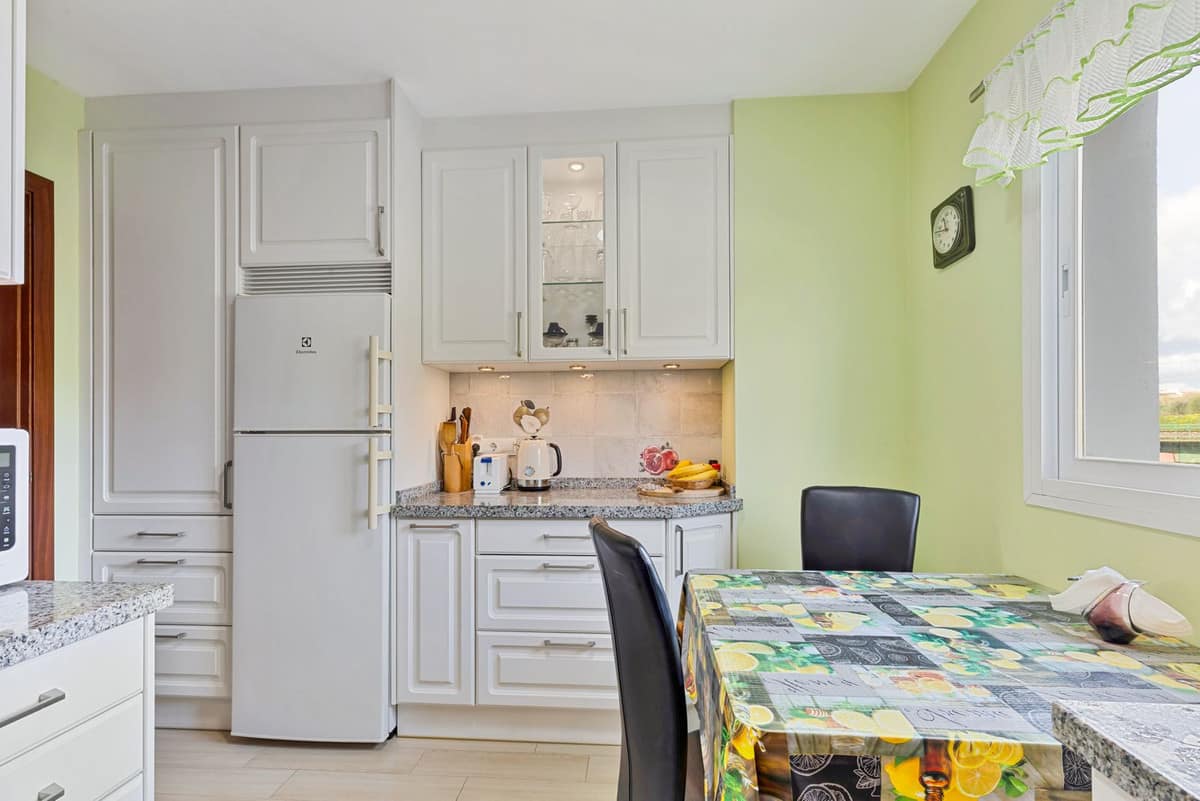 The apartment originally had 3 bedrooms but one of the bedrooms has been opened up to the living room so today there are 2 bedrooms and 2 bathrooms. The kitchen has been renovated and has space for a small dining table.