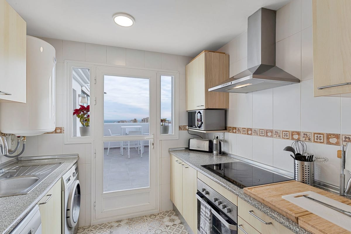 This magnificent 3-bedroom, 2-bathroom apartment has a spacious living room that opens onto a glazed, spacious terrace, allowing year-round use. In addition, the apartment has two open terraces, one as an extension of the glazed terrace with sea views and the other with mountain views. Perfect facilities for relaxing and enjoying the Mediterranean sun. The comfort of living is enhanced by a private sauna, from which you can admire the evening sun.