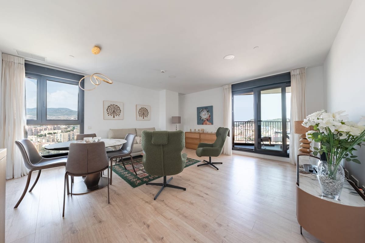 Step into elevated elegance in the heart of Malaga with this exquisite three-bedroom, two-bathroom residence located on the twenty-fourth floor of the iconic AQ Urban Sky South Tower. Soaring above the city, this contemporary sanctuary offers sweeping panoramic views that stretch from the shimmering Mediterranean Sea to the historic charm of La Alcazaba, capturing the very essence of coastal sophistication.