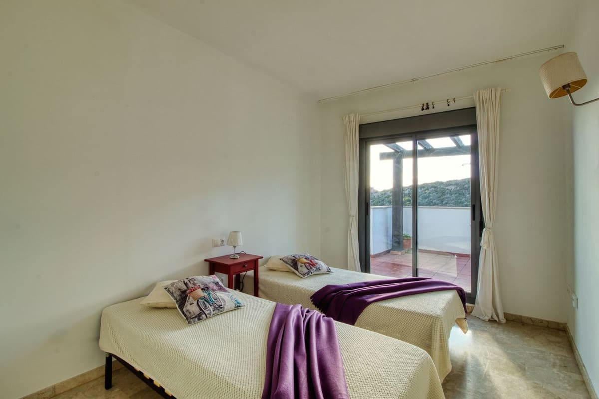This beautiful property is located in a quiet and picturesque semi-elevated area between La Duquesa and Sotogrande. The property offers a spacious entrance hall with fitted wardrobes, a bright living and dining area, and a fully fitted kitchen with serving hatch and separate utility room. The apartment features three generously sized bedrooms, all with fitted wardrobes, and two bathrooms, one of which is en suite. A highlight of the property is the south-west facing corner terrace, which enjoys breathtaking panoramic views of the Mediterranean Sea, the African coastline, and Gibraltar.