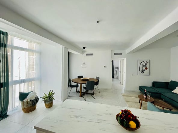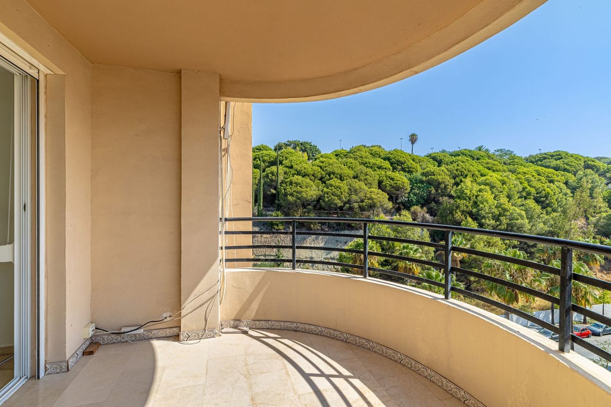 Impeccable top floor apartment in the heart of Marbella, just a 5-minute walk from the beach and the promenade, and next to supermarkets and shops. The property was renovated a few years ago and features: a living/dining room with access to the terrace offering beautiful sea views, a master bedroom with en-suite bathroom, two further bedrooms each with their own bathroom, a fully equipped kitchen, and a laundry room. The complex has a swimming pool and garden, and a secure communal car park.