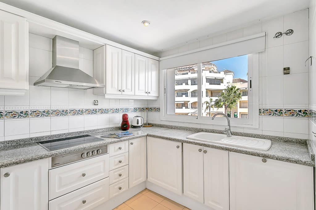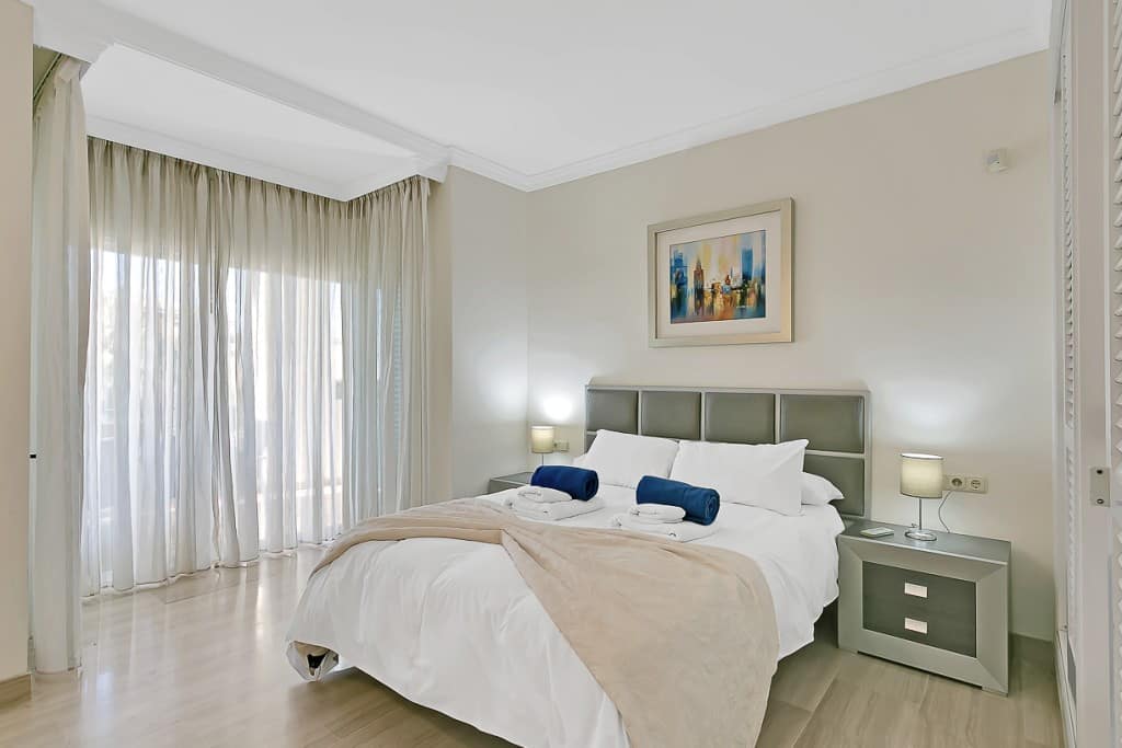 Beautiful and spacious three bedroom , two bathroom and guest toilet third floor southwest facing corner apartment in Hacienda Playa, beach side of Elviria in East Marbella with holiday rental license. The apartment offers lovely sea and mountain views, large corner terrace with glasscurtains, AC hot and cold, marble floors, double glazing windows, underground parking space, storeroom and lift. Hacienda Playa offers two community pools, beautiful communal gardens and a paddle tennis court and is well kept throughout the whole year, only 5 min walk to the beach and within walking distance to all local amenities. The centre of Marbella is a short 10 minutes drive away.