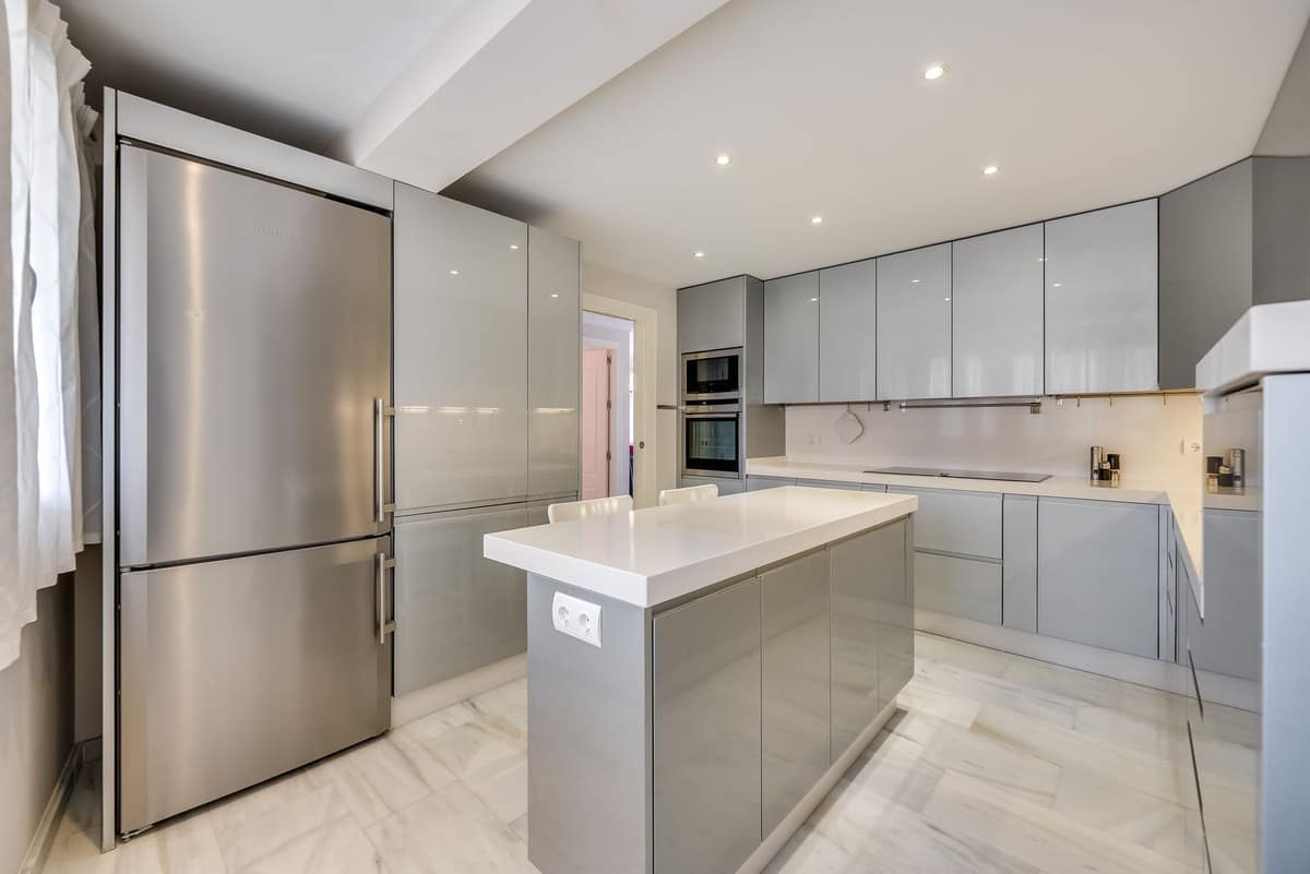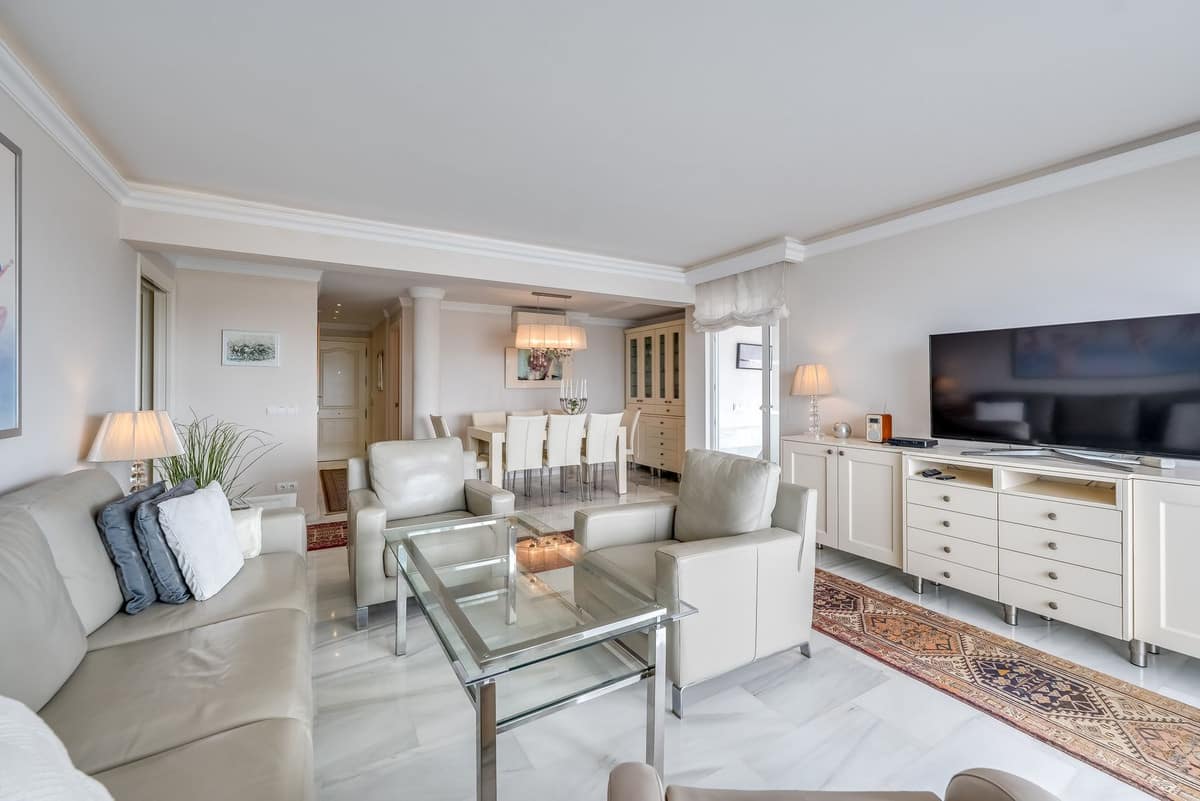 The bright living room offers an excellent space to enjoy both dining and relaxation by the TV. You can also step outside to a wonderful south-facing terrace that overlooks the pool, where you can enjoy al-fresco dining or evening drinks, whilst knowing that you have everything Marbella has to offer right at your doorstep. The kitchen is ample in size, and as a bonus, a gas stove connected via natural gas, which is perfect for those who enjoy cooking.