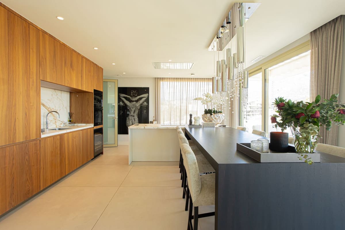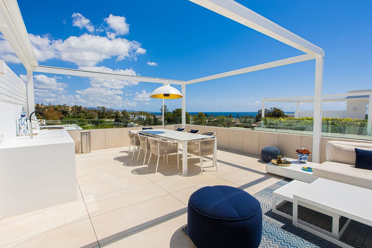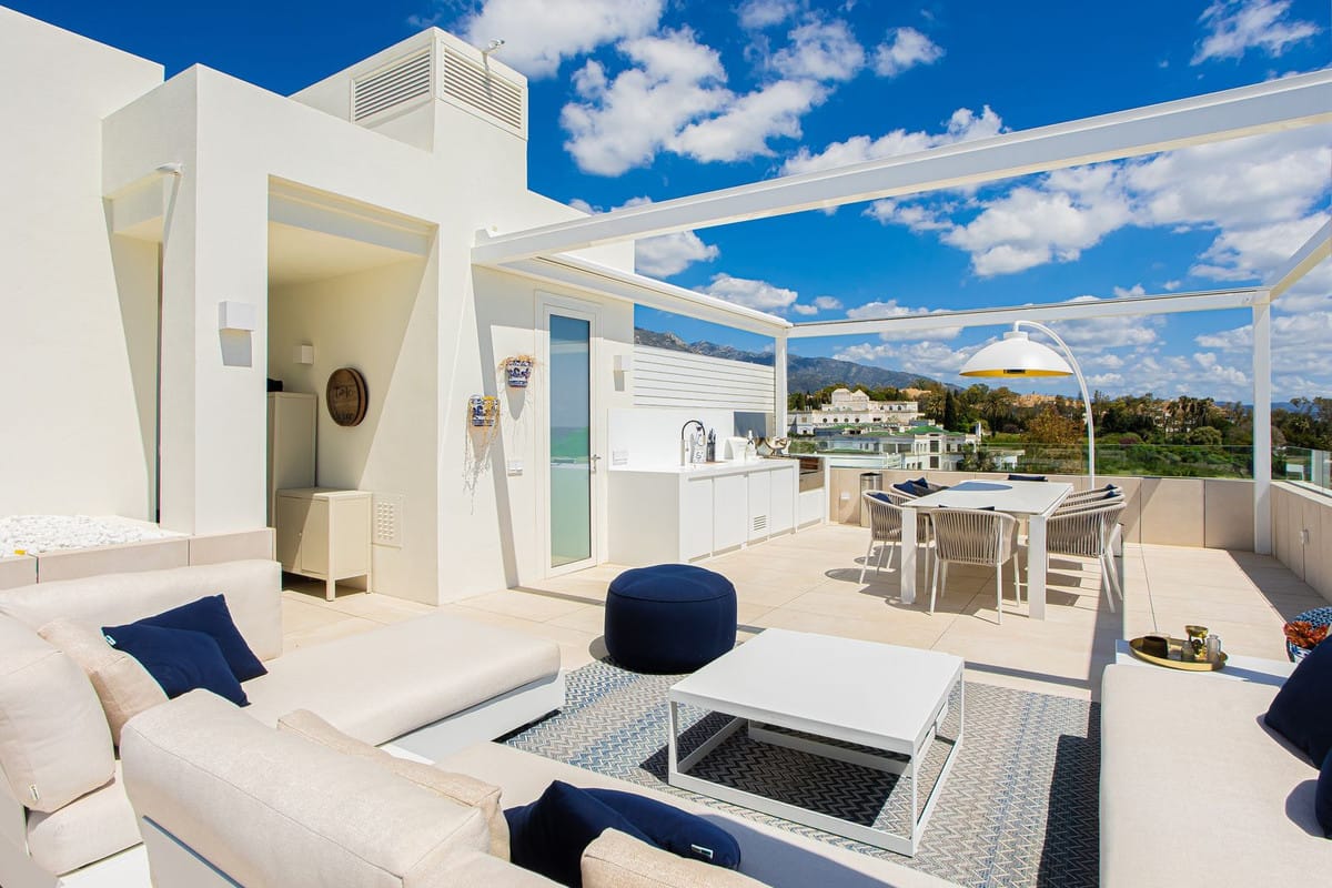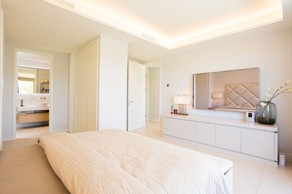 This exceptional apartment embodies contemporary refinement and Mediterranean elegance. The generous volumes unfold around a spectacular living room bathed in natural light, thanks to large bay windows that open onto 360° panoramic views: the sea, the surrounding golf greens and the majesty of the Andalusian mountains.