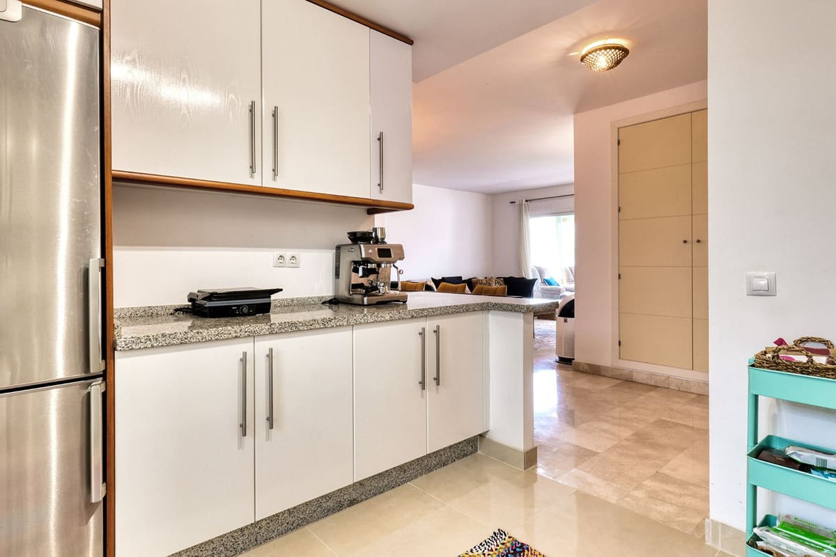 Discover this spectacular three-bedroom penthouse with a private solarium-style terrace in the exclusive Cerrado del Águila Golf development, where tranquility and privacy are part of your daily life. With 125 m² of built area, this space stands out for its spaciousness and light, thanks to its marble floors and large windows offering stunning views of the golf course and the Mijas Mountains. The kitchen, equipped with a separate laundry room, is perfect for food lovers.