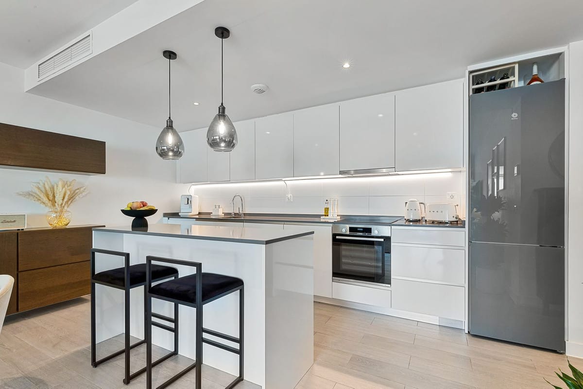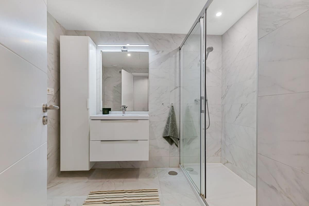 As a ground floor apartment, the home truly shines through its open connection between the kitchen, living room, and main terrace. This terrace extends naturally from the living area, offering space for a barbecue and relaxed outdoor dining – perfect for long evenings and shared meals. A second terrace is connected to the master bedroom, enjoying the morning sun and providing a quiet retreat to start the day.
