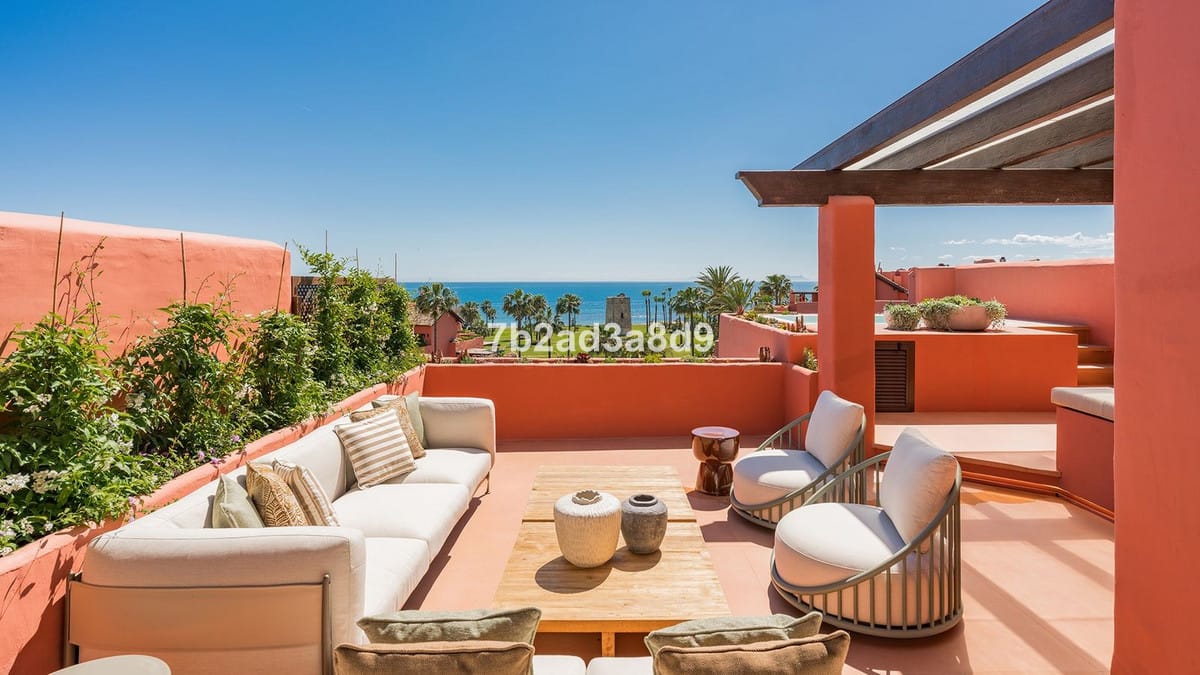 Presenting Penthouse Bermeja, an elegant andfully renovated penthouse in the beachfront community of Torre Bermeja, Estepona.