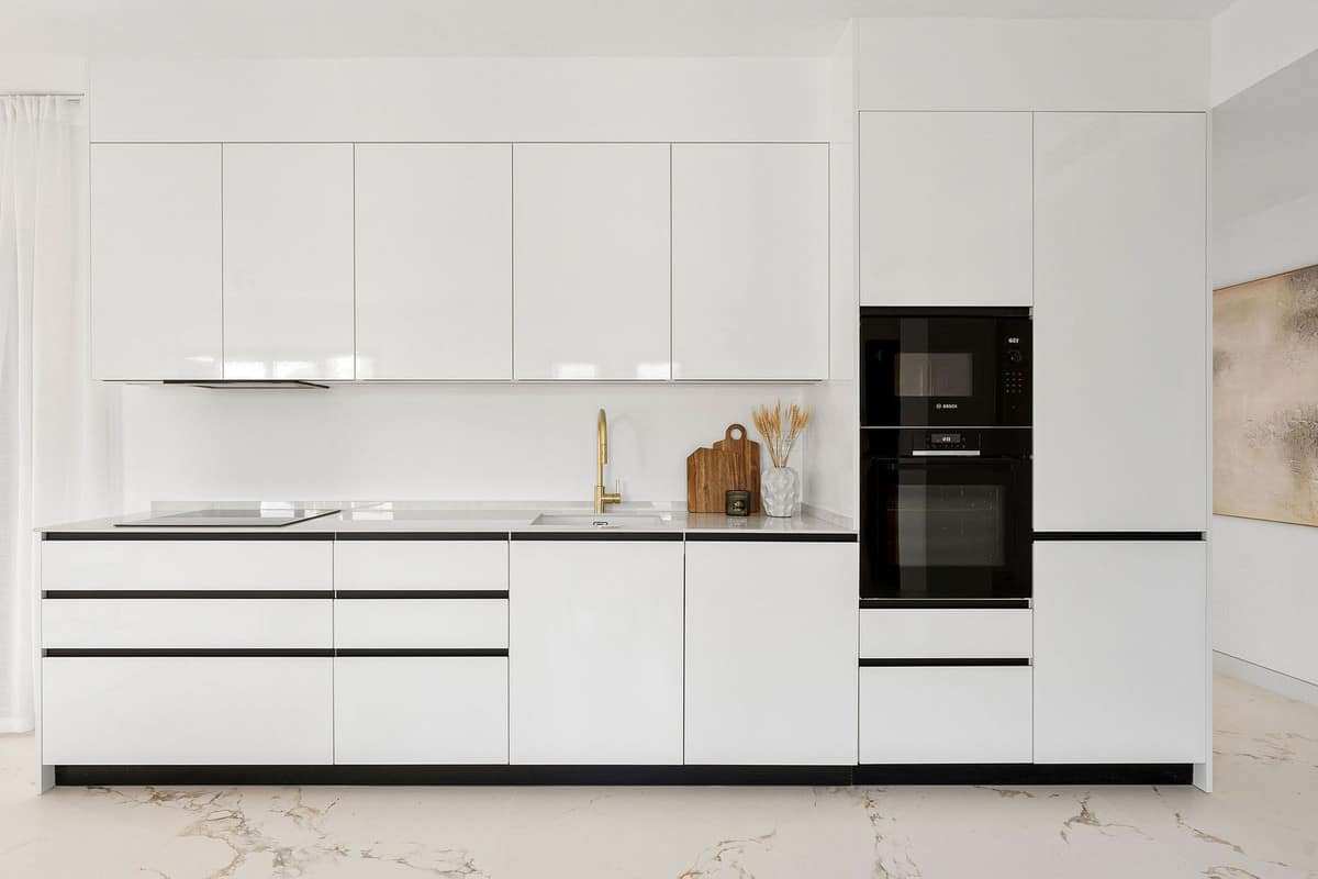 All three bedrooms feature bespoke built-in wardrobes, while each bathroom has been elegantly designed with top-quality porcelain tiles, Italian fixtures, and integrated lighting that enhances the home’s modern architecture.
