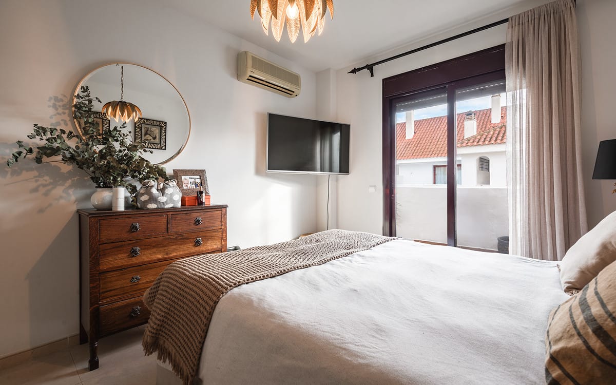 This exquisitely three-bedroom apartment is ideally located in the heart of Nueva Andalucía, within easy reach of all amenities and just minutes from the beach. Situated on the first floor of a charming gated community, the property combines contemporary comfort with the timeless appeal of Andalusian-style living.