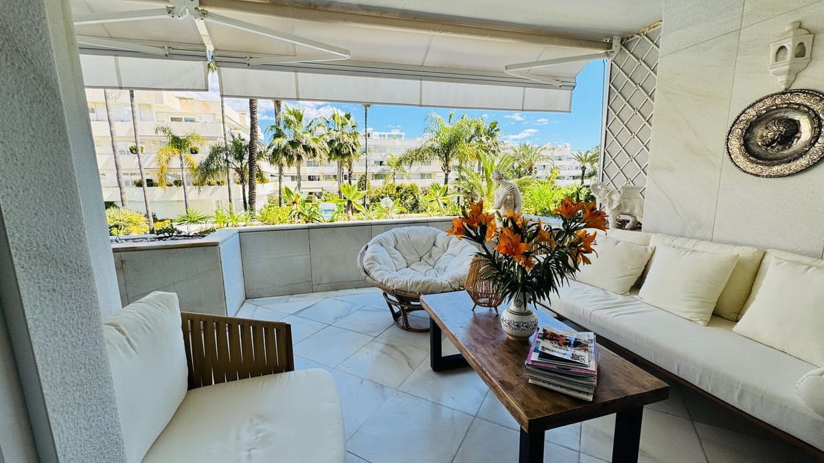 Rare opportunity! Stunning apartment located in one of the most sought after luxury community in Puerto Banus, near Marbella. The famous residential luxury community enjoys direct access to the promenade of Puerto Banus and the beach,and its multitude of beach restaurants. The community is gated with 24/24 security and boasts a beautiful indoor pool and spa with a fully equipped state of the art gym, a social club with a bar for the residents, as well as a popular restaurant opened from April to October. The residents and their children have access to a games room fitted with ping pong tables, billiard table and kids games for the little ones. A Sauna, Hamman and a jacuzzi are available in the spa area to the residents only. All is presented in a beautiful smart comfortable style and relaxed atmosphere found only in 5 stars luxury Hotels!