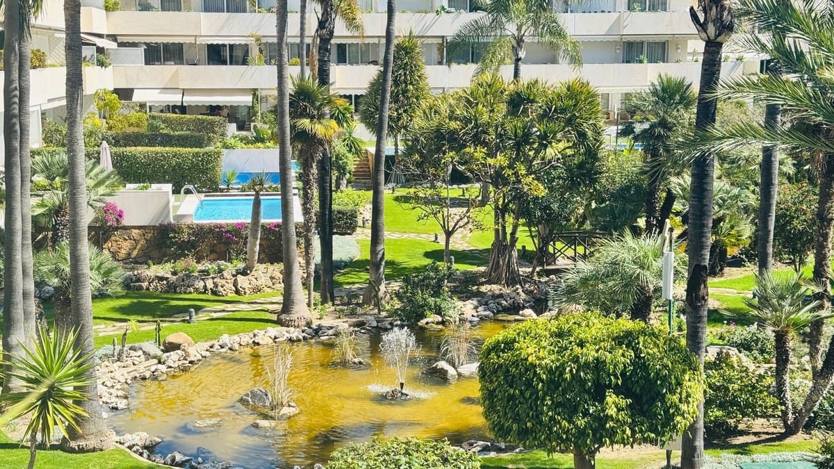 The apartment has a large living area leading to the covered terrace looking out to the sea and to the beautiful gardens and extra large lake like pool.