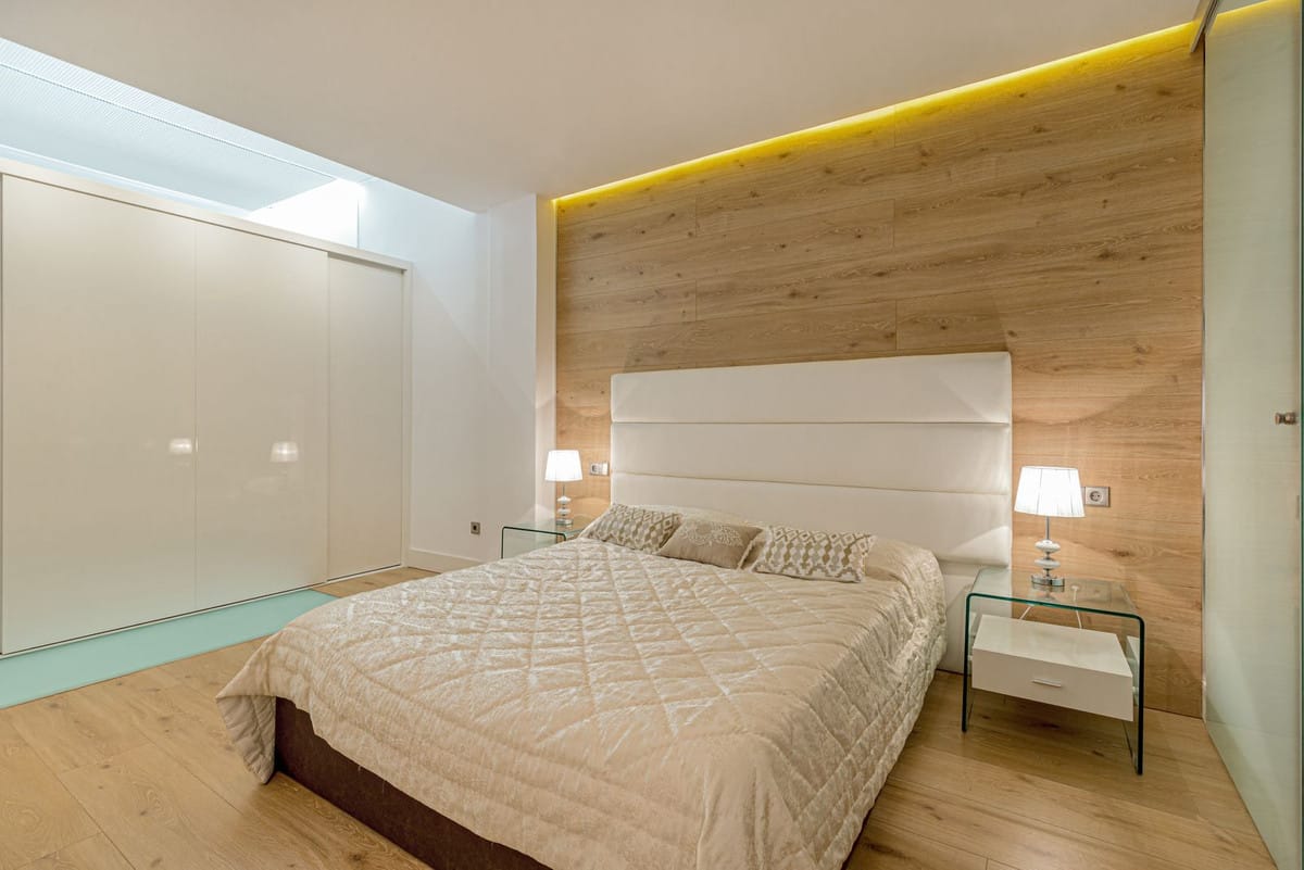 Completely renovated in 2014 with top modern design and with high quality materials, this property offers numerous extras such as a full domotic system that controls the electric blinds, the cold / hot air conditionning system, the underfloor heating and the many led lightings throughout the whole apartment; a music system with integrated speakers in the ceiling in each bedroom; Hansgrohe fittings and Porcelanosa ceramic tiles in the bathrooms; a full shower room/toilet on the living area level, as well as a storage/utility room.