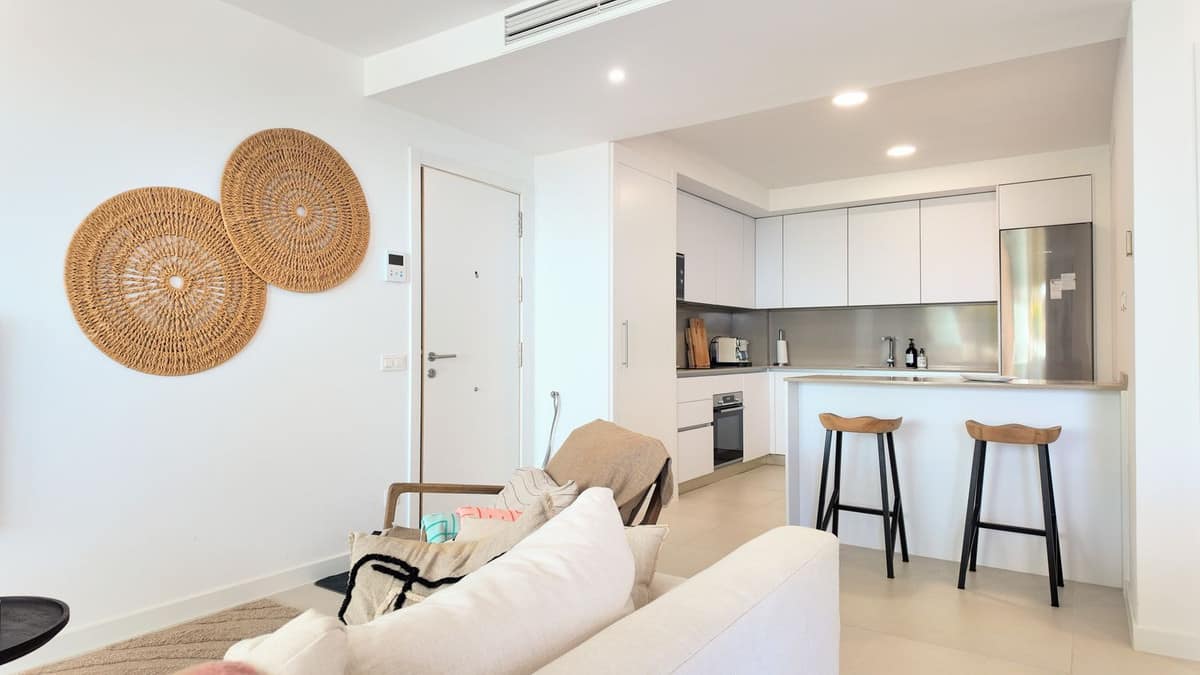 Set within a contemporary, architecturally distinctive residential community, this elegant 3-bedroom apartment offers a refined blend of privacy, natural light, and exceptional outdoor living, just 500 meters from the beach.