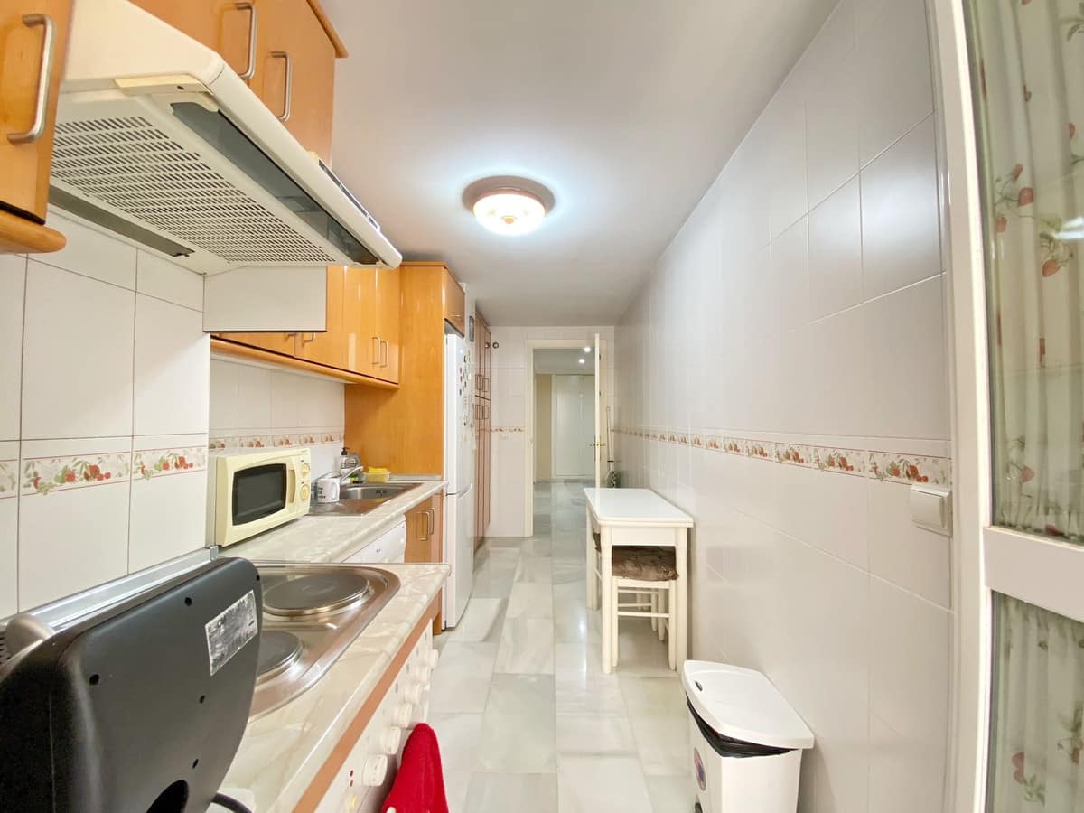 Spacious apartment in a fantastic location in the heart of San Pedro de Alcántara, situated on a charming pedestrian street next to the church square. This bright, corner apartment features three bedrooms and two bathrooms. The master bedroom has an en-suite bathroom. All bedrooms have small balconies. The kitchen is also spacious and includes an exterior laundry area. The living/dining room opens onto a covered terrace with pleasant views of a quiet pedestrian street. In excellent condition and ready to move into. The building has an elevator. A parking space in the same building is included.